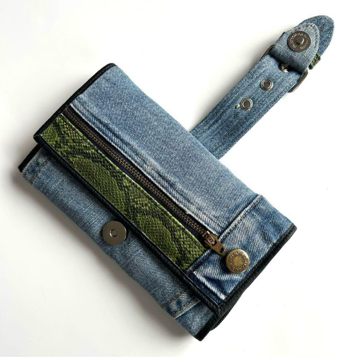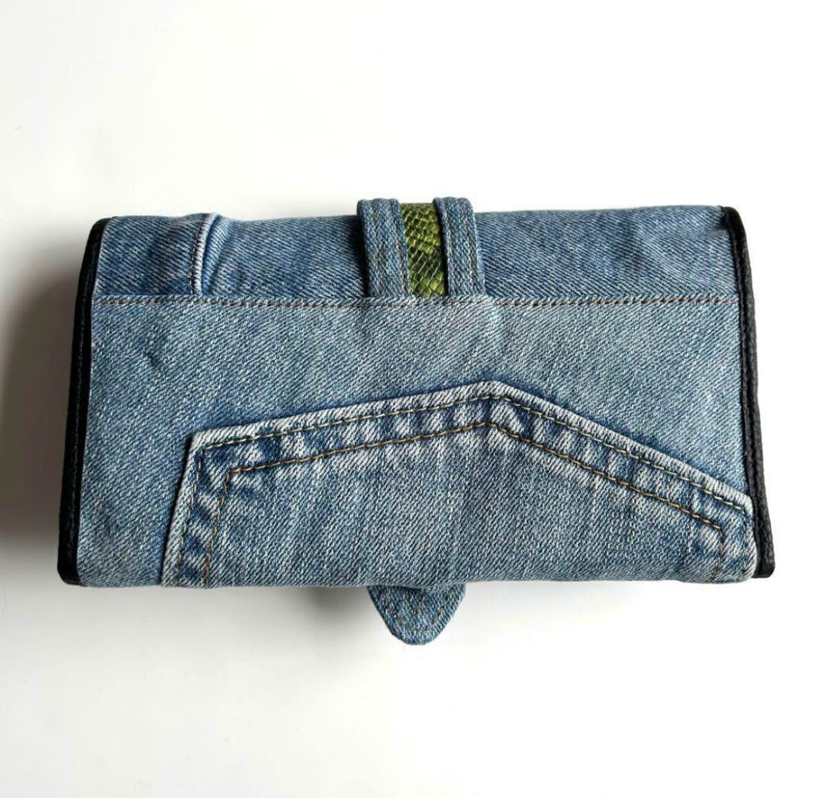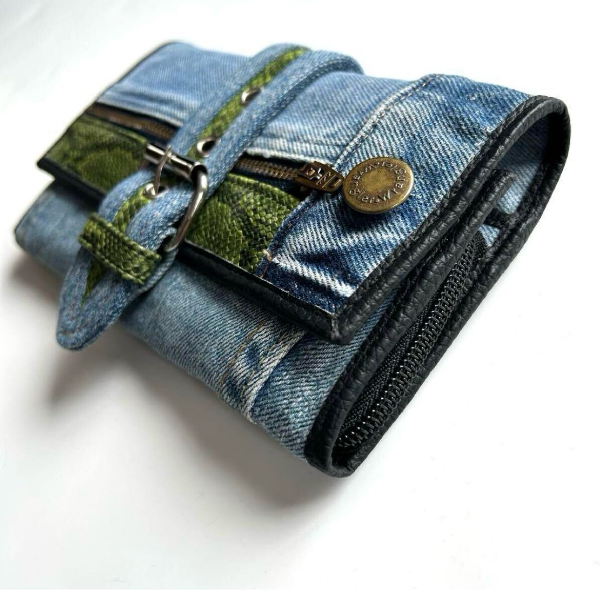 ひとつひとつハンドメイドで作られたリメイクデニムの長財布です。