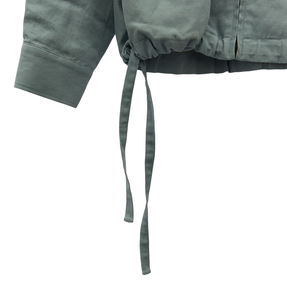 目の詰まったコットンリネン素材のツイル生地に、ウォッシュをかけることでややヴィンテージ感ある仕上がりのシリーズ。生地にやや張りがあるため、カジュアルになりすぎないバランスがポイント。シンプルなジャケットの裾にリボンを通すことで、自由にブラウジング可能なデザインに。サイドを絞りハイウエストにした、コンパクトな着こなしがおすすめです。バックスタイルには上部にギャザーを入れることで、女性らしさも加えました。