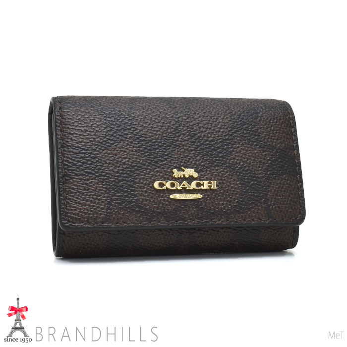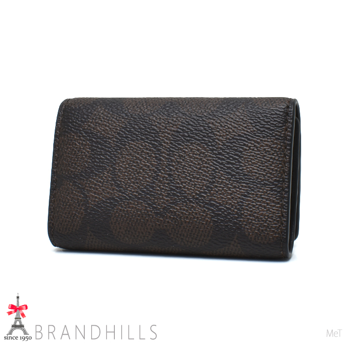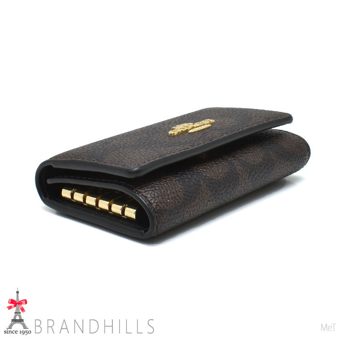 商品名コーチ キーケース 5連 メンズ レディース ファイブ リング シグネチャー ダークブラウン キーリング付