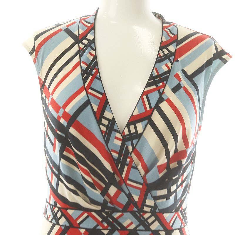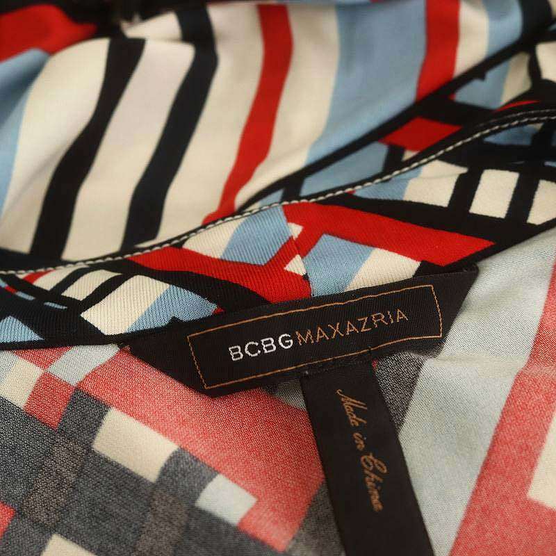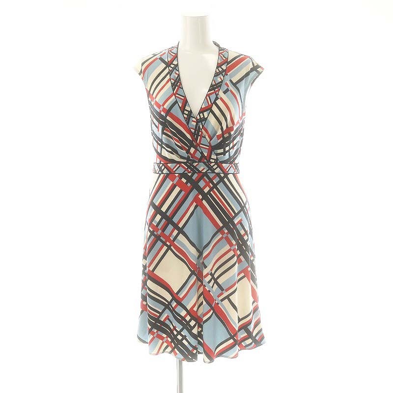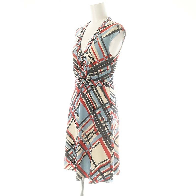 ビーシービージーマックスアズリア BCBGMAXAZRIA チェック柄カシュクールノースリーブ ワンピース ひざ丈 XS 赤 レッド 水色