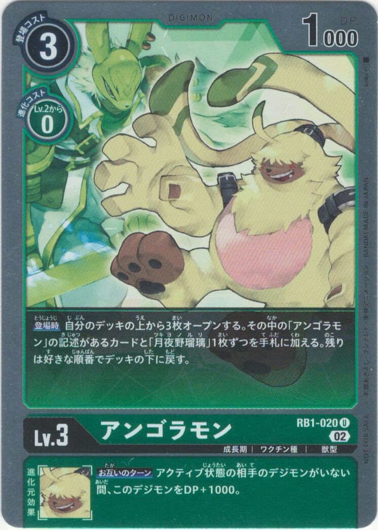 アンゴラモン(BOX購入特典/パラレル)〔U〕【緑/Lv.3/RB1-020】〈ライジングウインド RB1〉