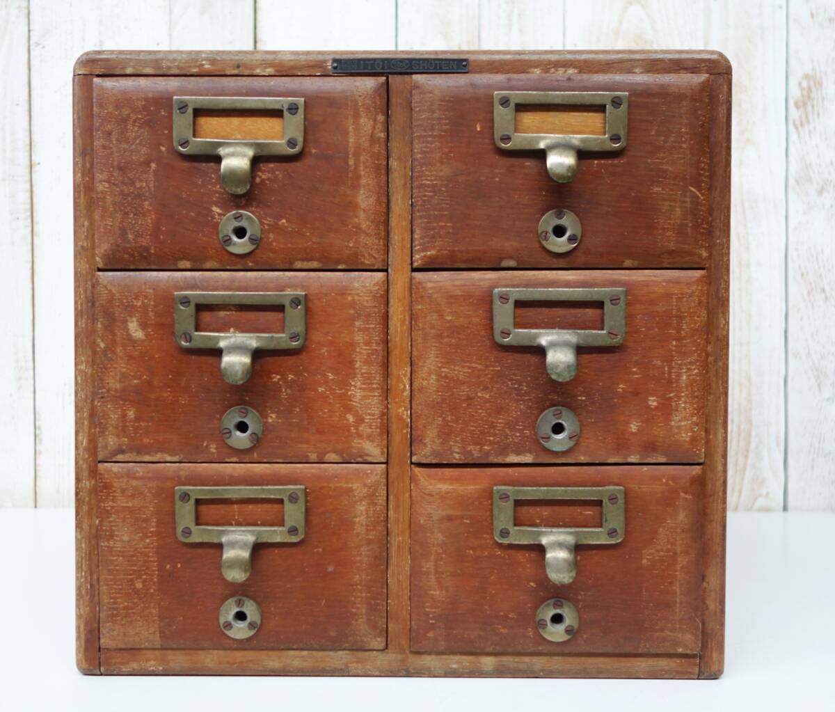 *アンティーク ヴィンテージ レトロ 当時物 *ITOI SHOTEN 伊藤伊 商店 *図書カードケース 収納棚 キャビネット *天然木製品 ウッド 角丸 *上の引き出し内だけ仕切りがあります。 *ディスプレイ 家具 什器 リペア レストア カスタム |