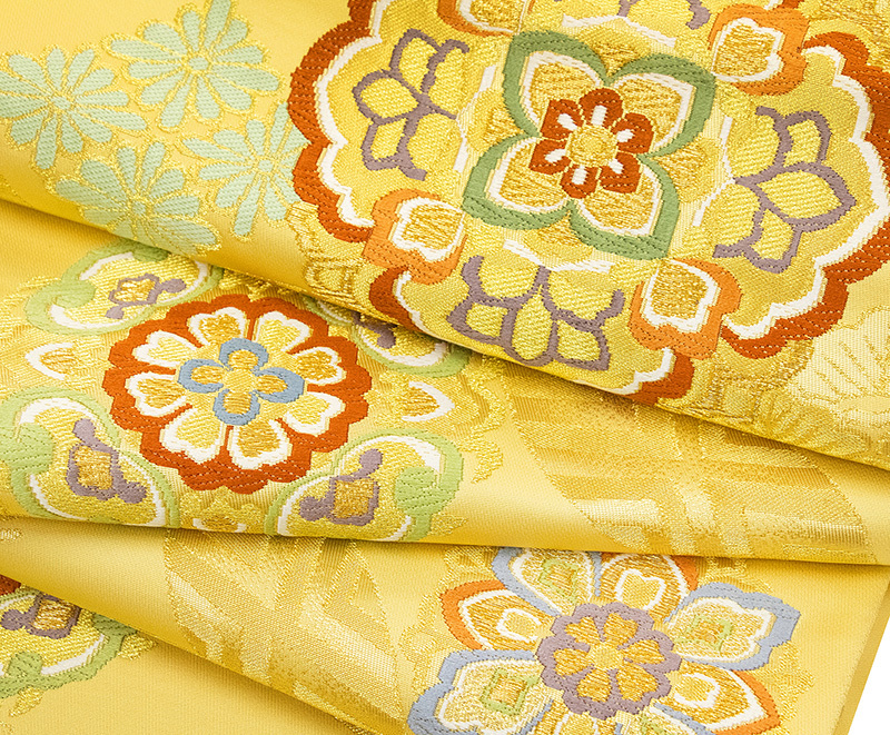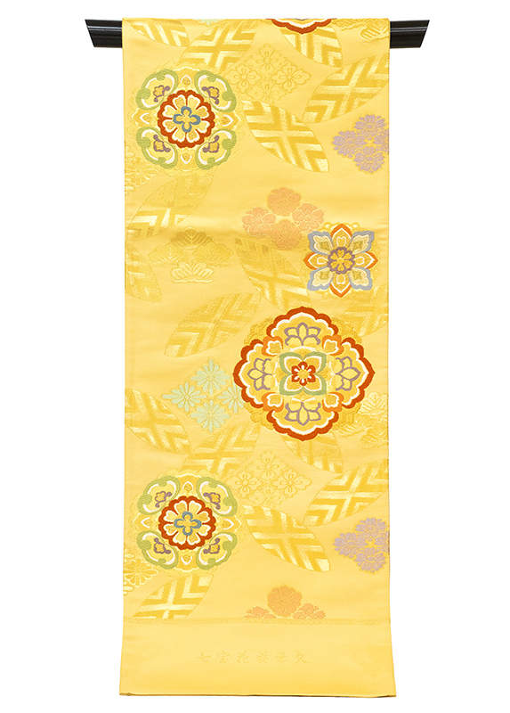 | ★商品説明 | ■上質な色糸を使用し、西陣老舗白寿苑織物が制作した振袖用袋帯です。 ■豪華に正倉院七宝花菱文を表現しています。 ■小物合わせや変り結びで晴れの日の着姿を完成させる逸品をお楽しみ下さい。 |