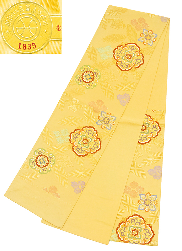 | ★品質・詳細 | ○地色 【こちらの地色は明るい黄味のクリーム地系です。】 ○絹織物 ○新品・未仕立の振袖用袋帯です。 ○西陣老舗白寿苑織物謹製 【証紙番号 1835】 ○長さ 約4.33m ○参考上代 250,000円 |