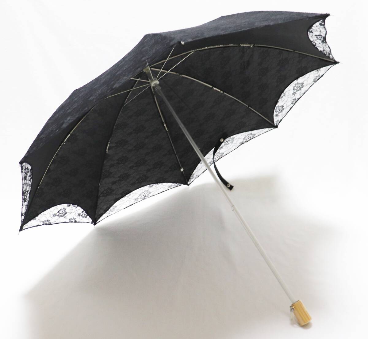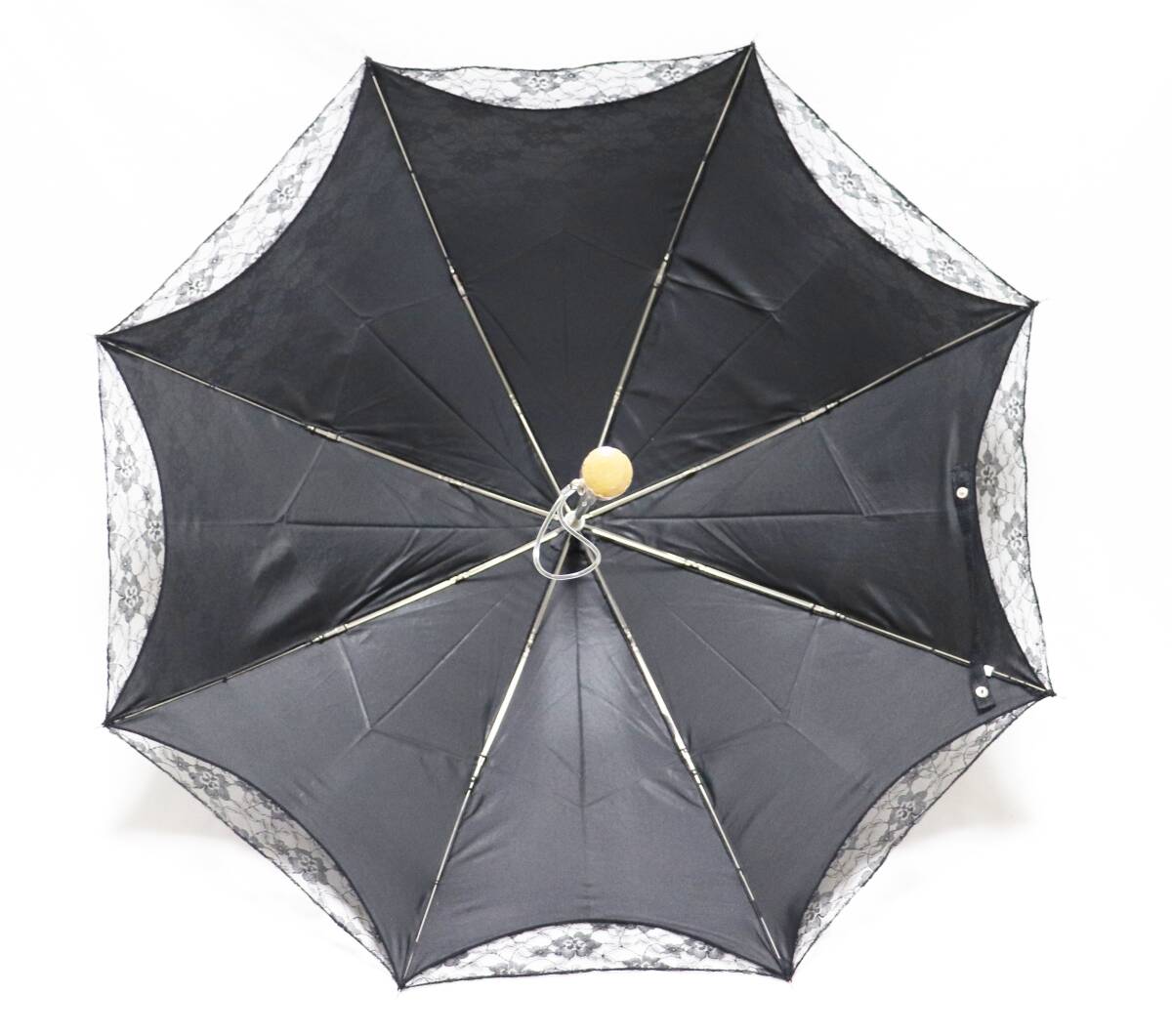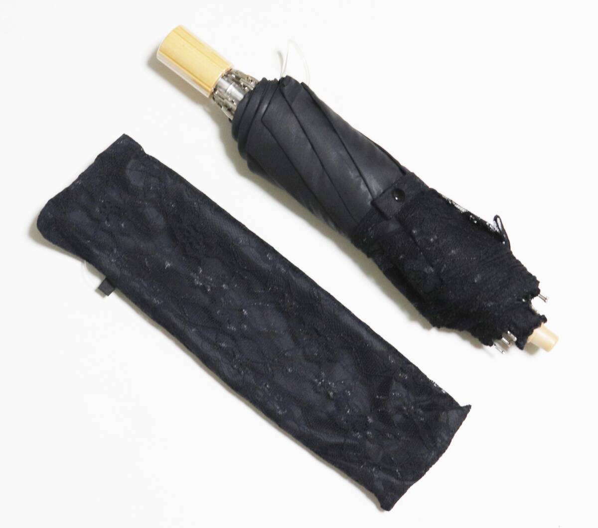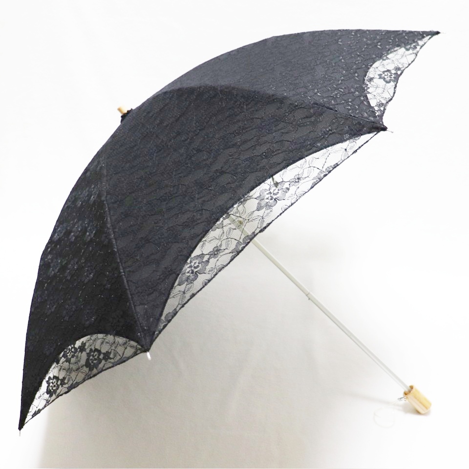| 新品 UVケア加工 上品 豪華2重レース 晴雨兼用折りたたみ傘 日傘 雨傘 8本骨 木製ハンドル S1958 |