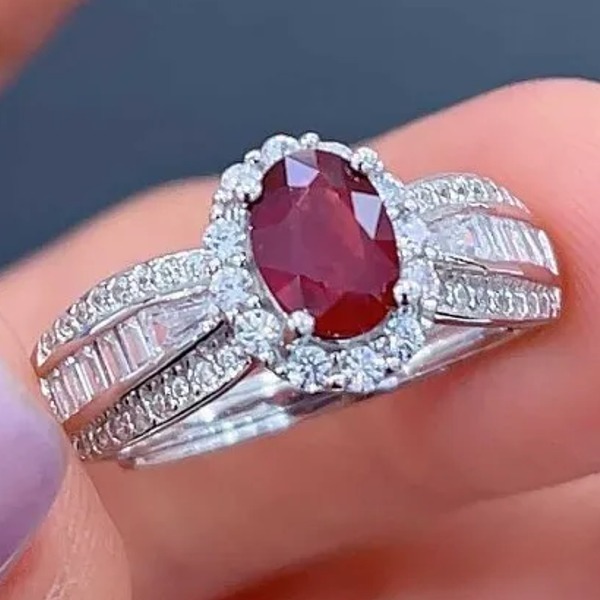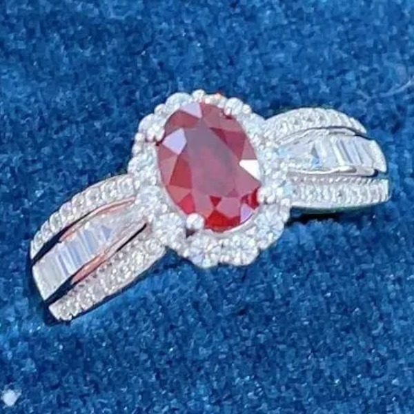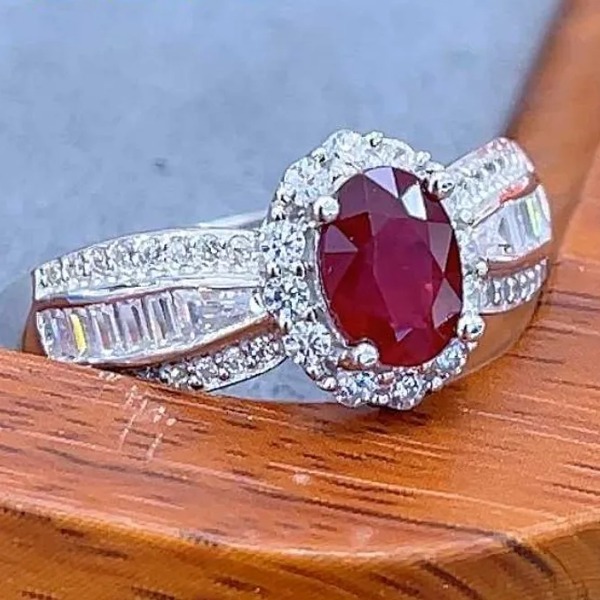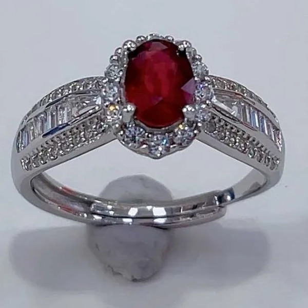 女性用925スターリングシルバーナチュラルルビーリング、5*7mm