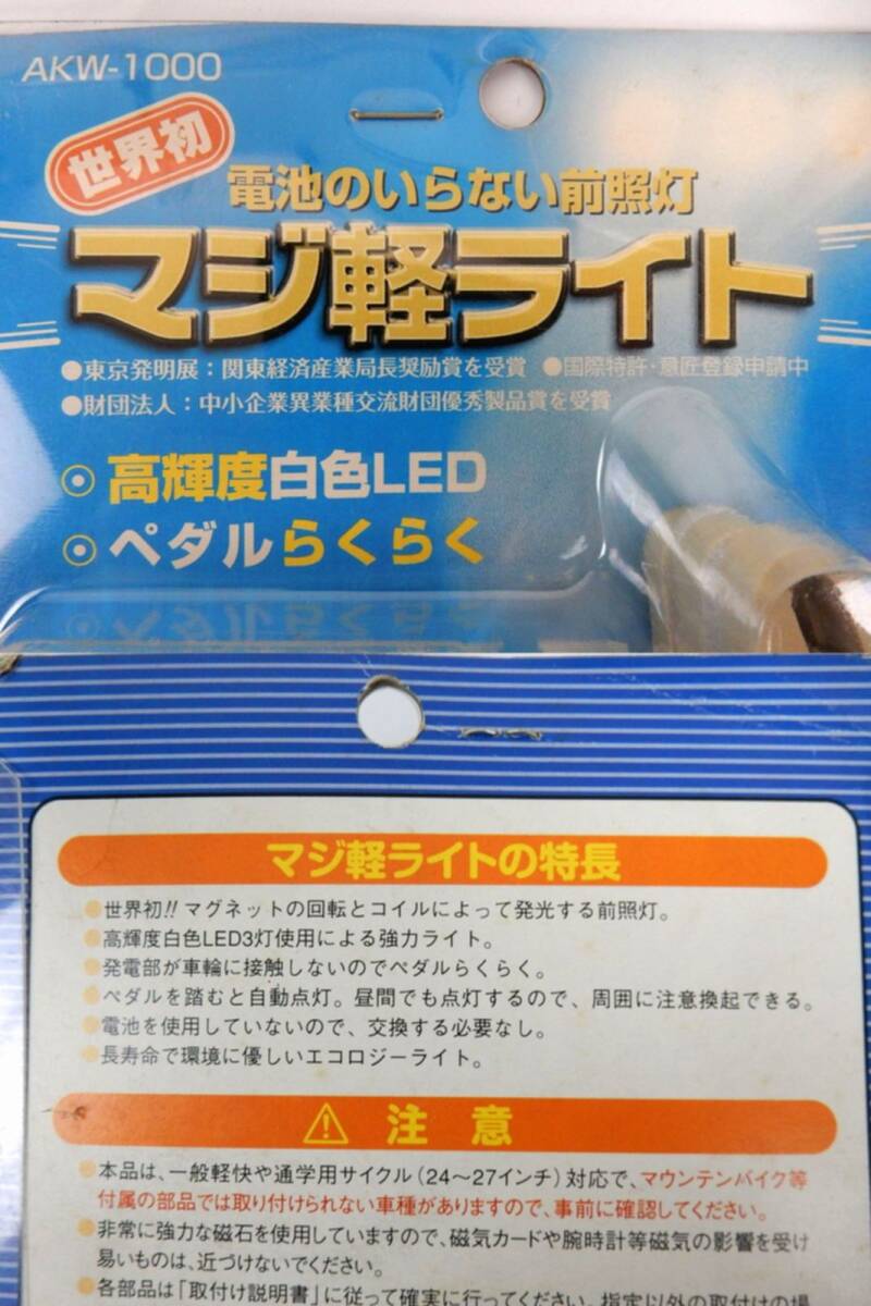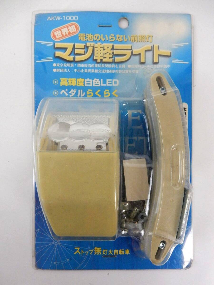【ウィル】電池のいらない前照灯 マジ軽ライト AKW-1000 シルバー 高輝度LEDライト 未使用 保管品 ヤケ有 中古品 JUNK 現状渡し 返品不可