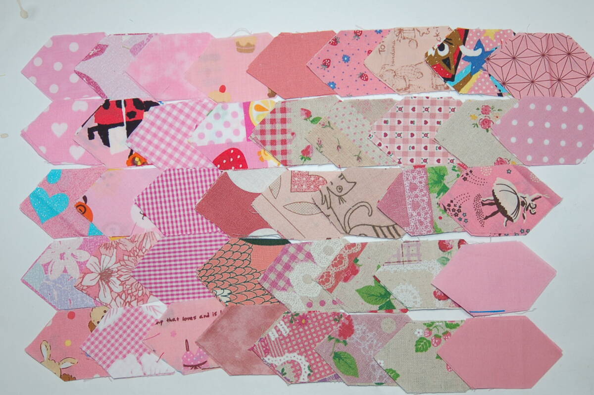 パッチワーク用細長六角形出来上がりサイズ22㎜に裁断してます。