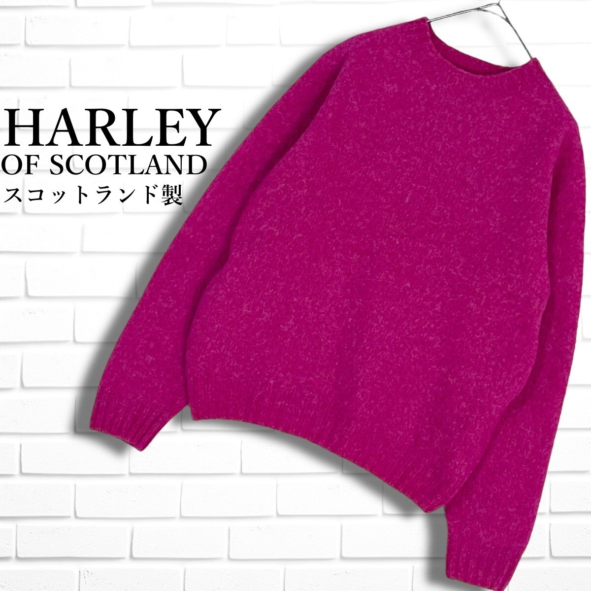 ◆美品◆ HARLEY OF SCOTLAND ハーレー オブ スコットランド ウール 100% 長袖 ニット セーター ピンク レディース ◆スコットランド製 送料無料◆ 3575E◇