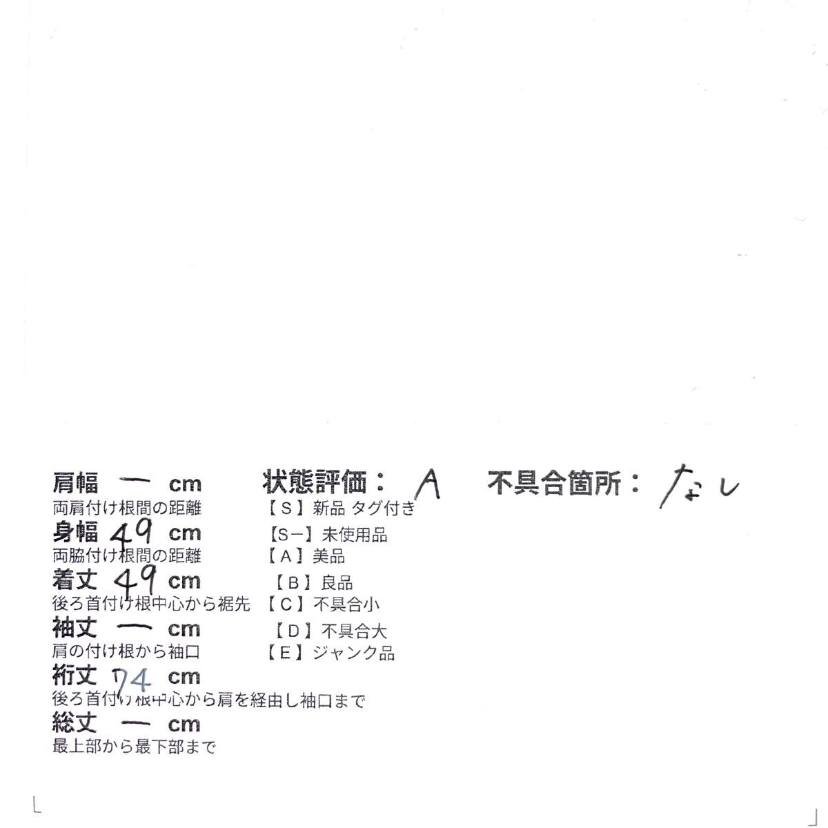 S-・・・未使用品