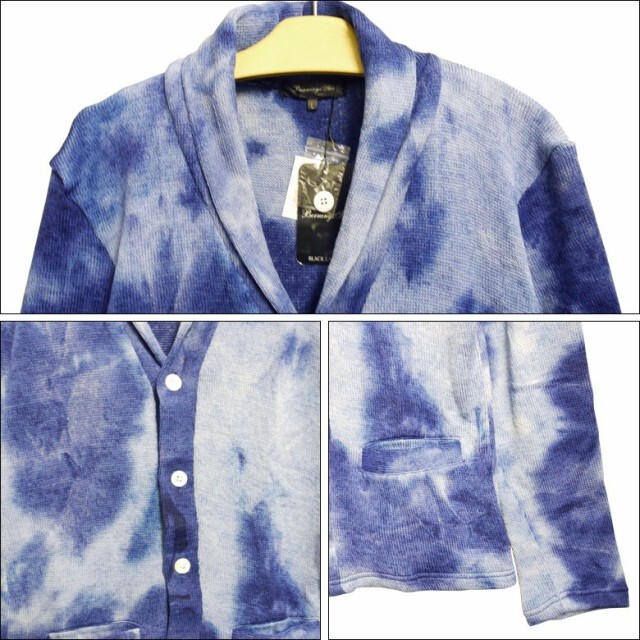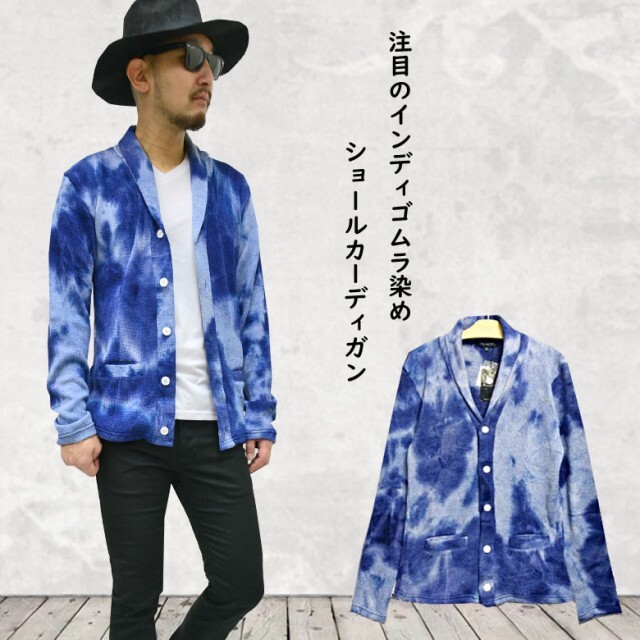 1円スタート メンズ インディゴムラ染ニットショールカラーカーディガン メンズ 3202-51 新品 ネイビー L