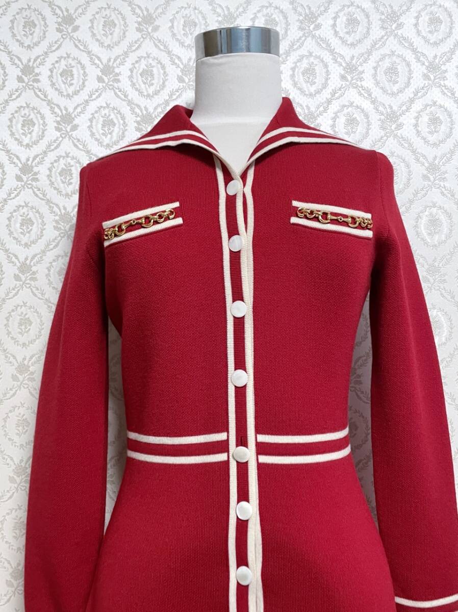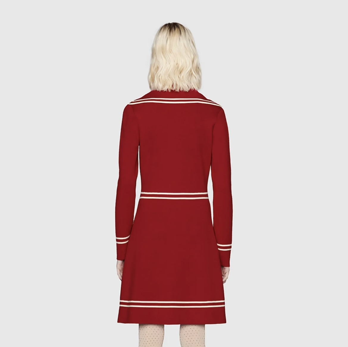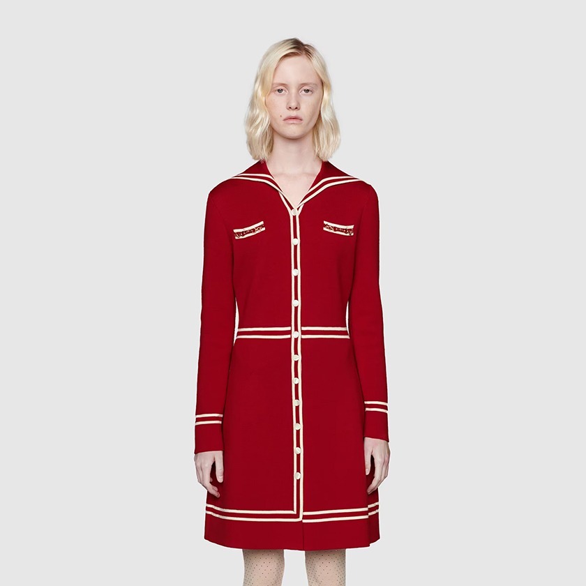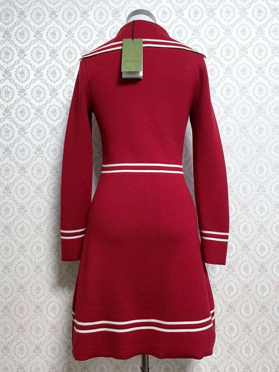 新品 タグ付き GUCCI グッチ コントラストトリム ウール ドレス ワンピース 赤色 レッド