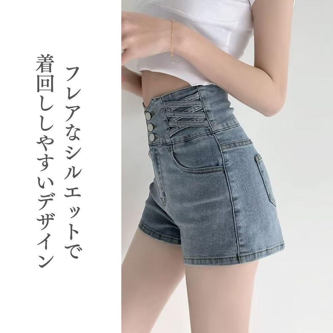 デニムショーパン 夏 ワイド ショートパンツ ショーパン ハイウエスト デニム 脚長 涼しい レディース ジーンズ 女性 無地 美脚 ウエストクロス ボトムス 短パン カジュアル シンプル ストリート 可愛い フェミニン おしゃれ 大人 マイクロミニパンツ ホットパンツ 韓国 中国 インポート