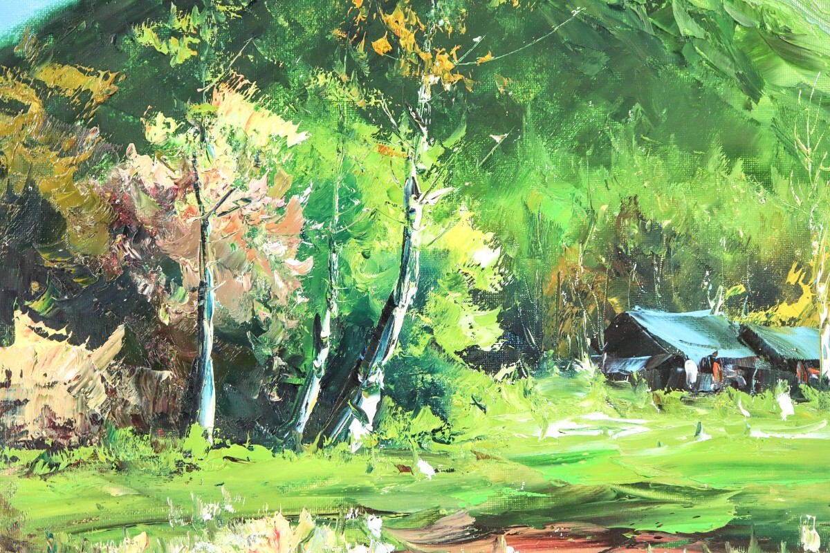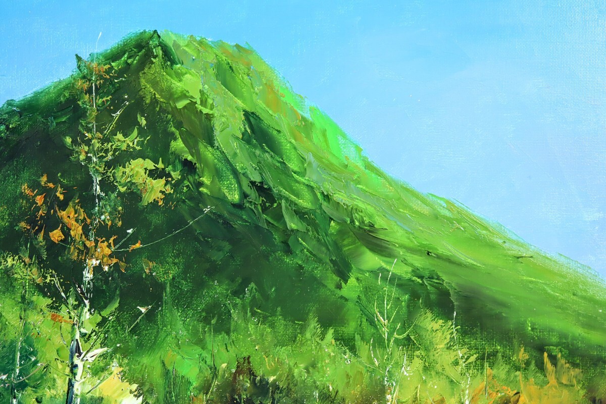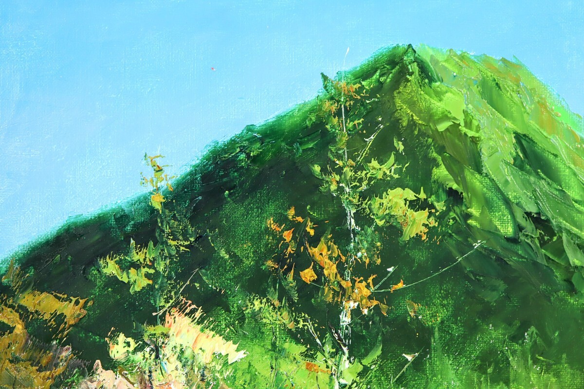 大胆な筆致が山肌の力強さを、繊細な色の重なりが