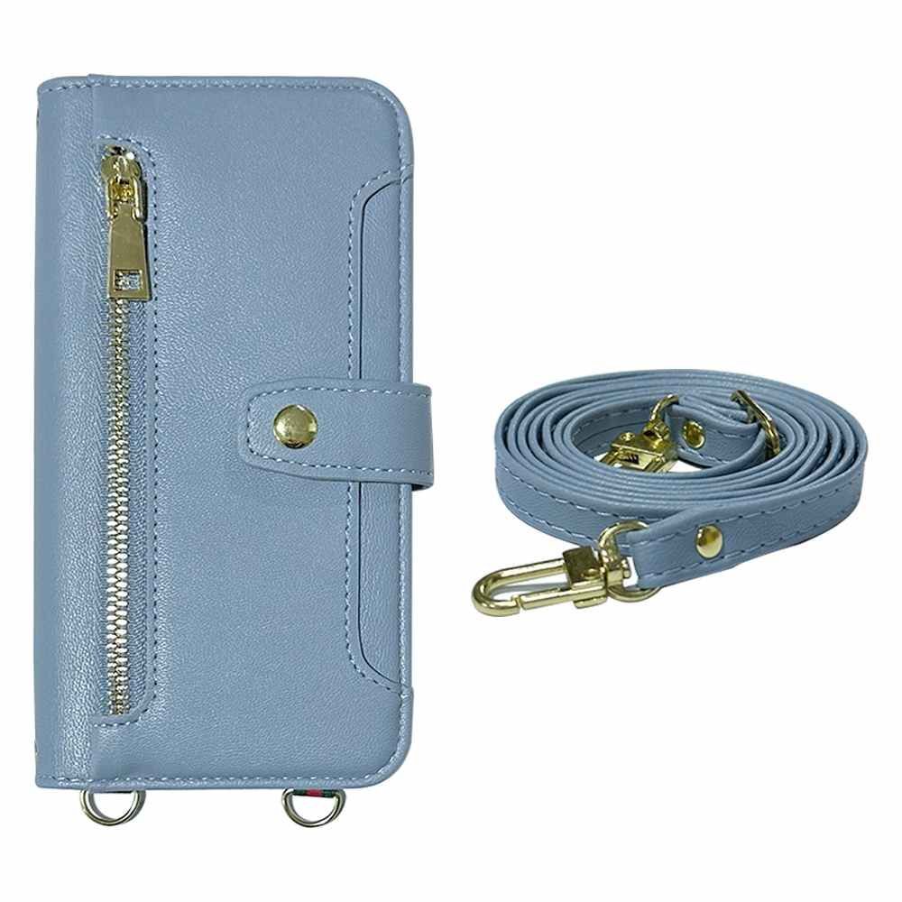AQUOS R9 SH-51E スマホケース(手帳ブルーグレー)斜めがけ スマホショルダー 手帳型 ストラップ付き くすみカラー