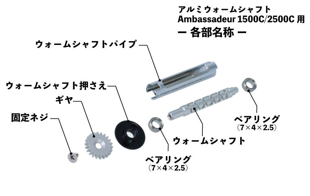 ABUアンバサダー1500C/2500Cに装着可能なベアリング入りアルミウォームシャフトです。