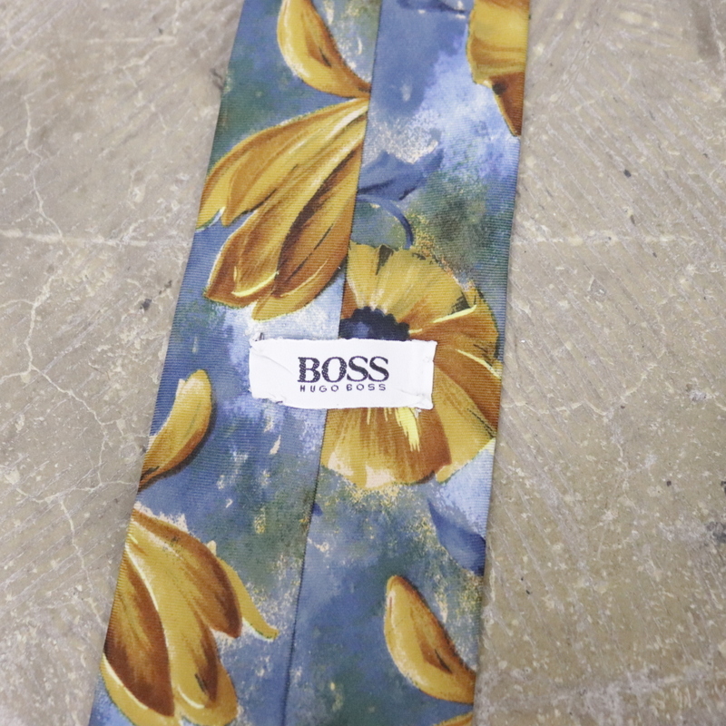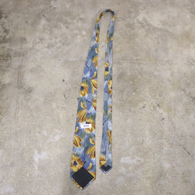商品名 NT330 2000年代製 HUGOBOSS ネクタイ■00s ブルー フラワー アート シルク イタリア製 アンティーク 雑貨 アクセサリー 古着 ストリート