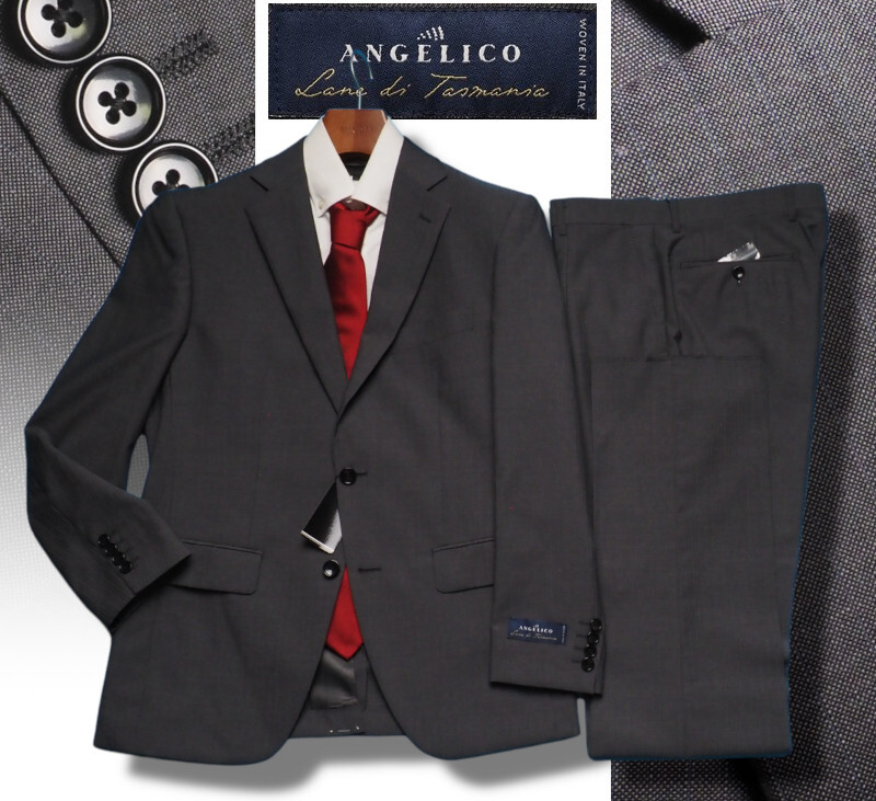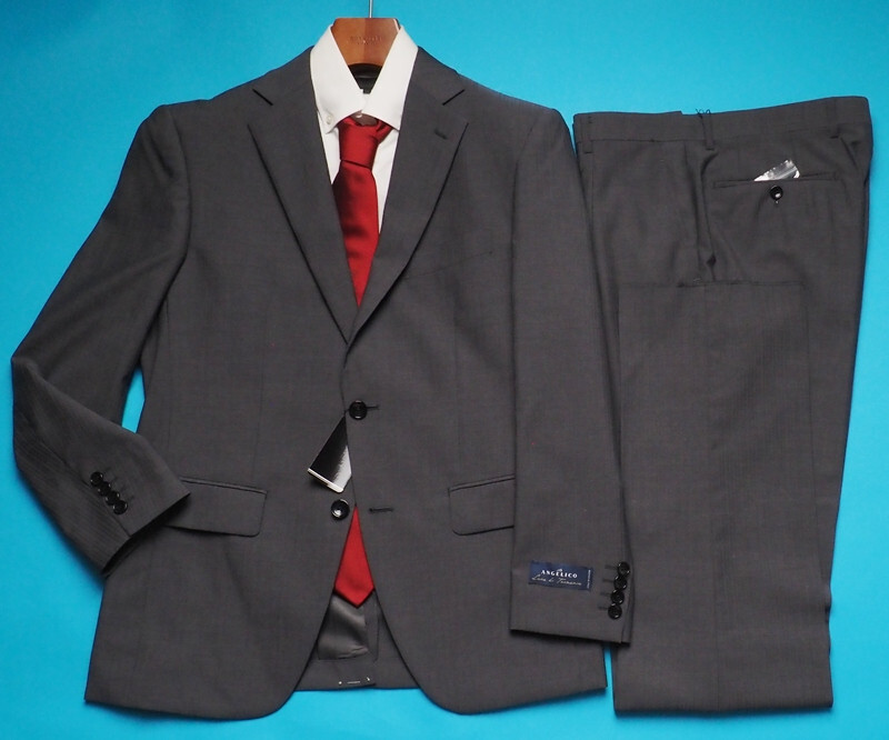 新品8万円 大手百貨店扱い 春夏『ANGELICO アンジェリコ イタリア製生地』ウール100% ストライプ スーツAB6灰(16) 18S-AG-1-1