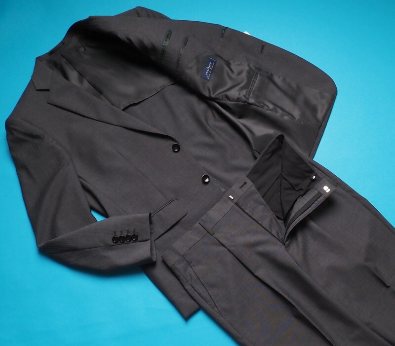 本台場など、百貨店向けならではの上級仕立てで仕上げられております。ファブリックは北イタリア随一の伝統とを誇るアンジェリコ社のウール100%生地を使用。イタリアならではの深み、光沢のある染色技術で仕上げています。