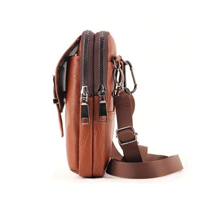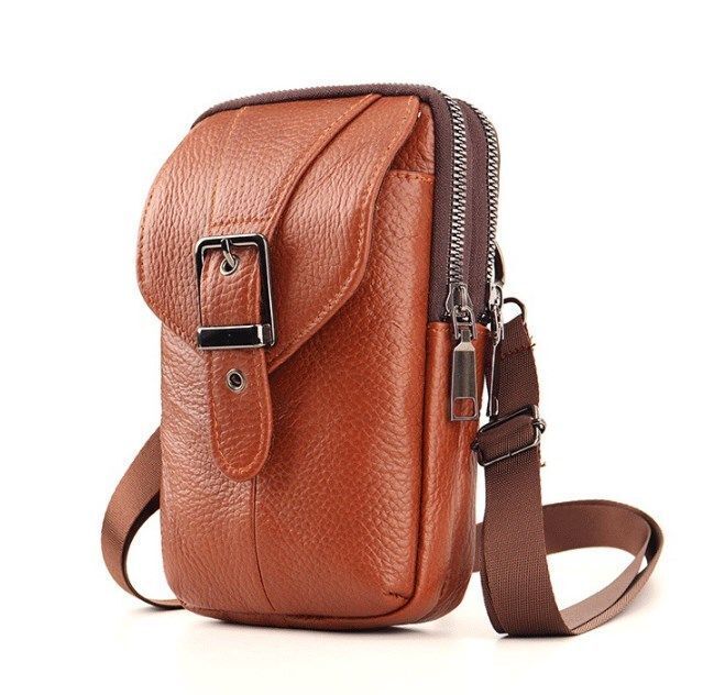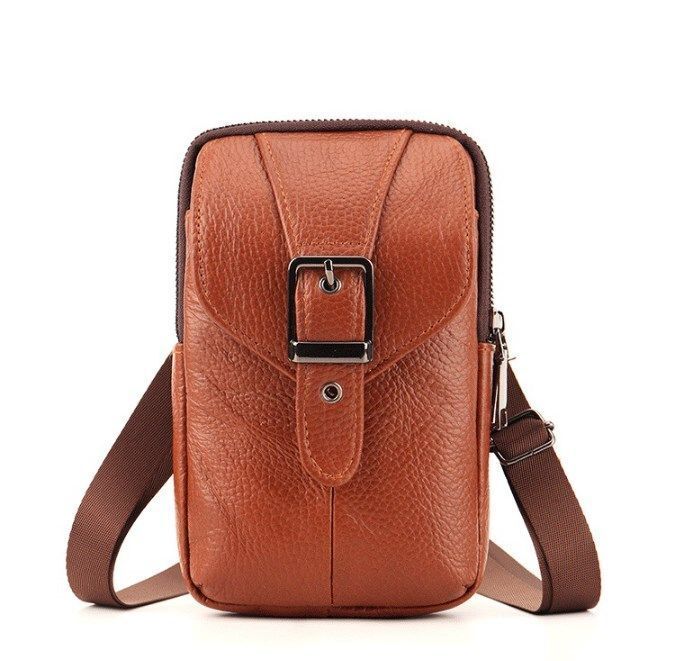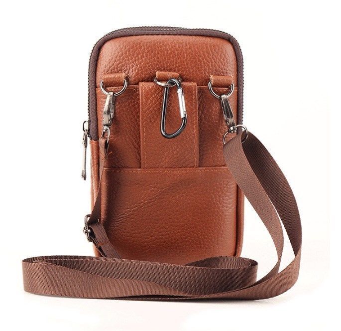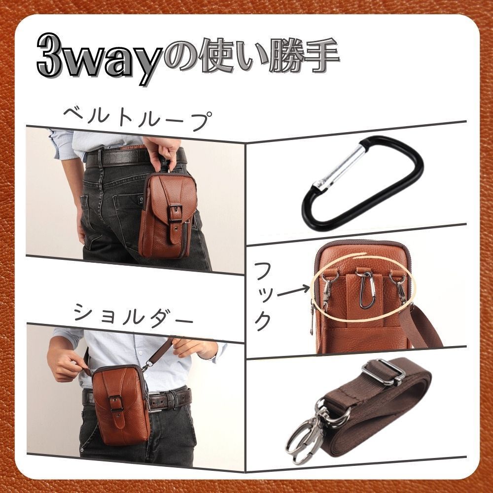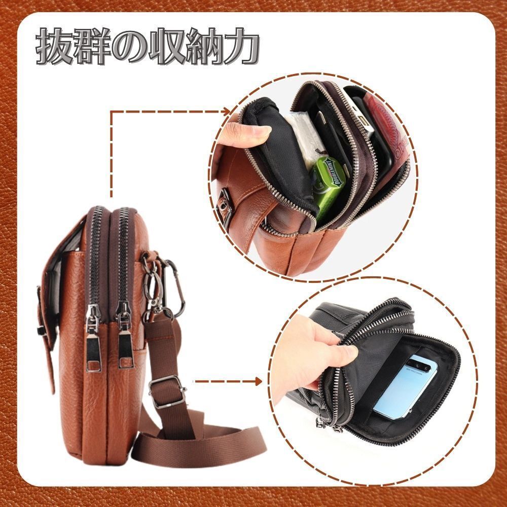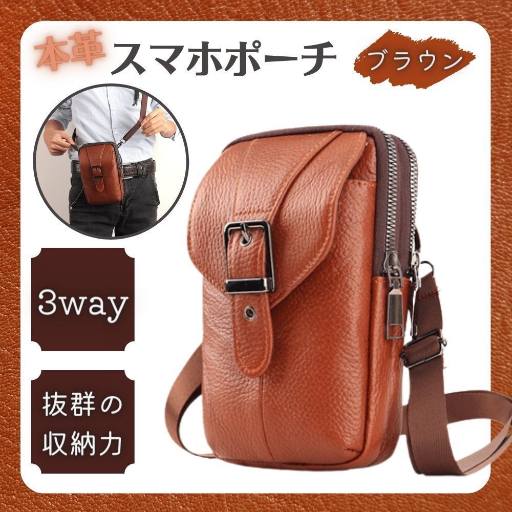 スマホポーチ 大容量 メンズ 牛革 ショルダーバッグ ウエストポーチ 斜めがけ スマホ入れ ボディバッグ ブラウン (0644)