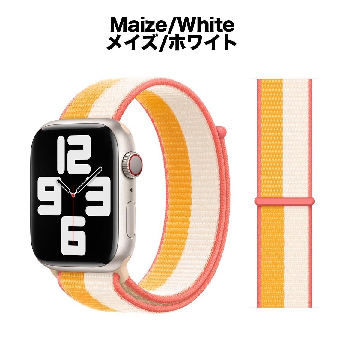 【送料込み】新色 42/44/45/46/49mm アップルウォッチ メイズ/ホワイト スポーツループ ナイロン バンド ストラップ Apple Watch