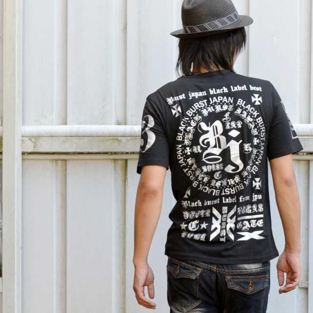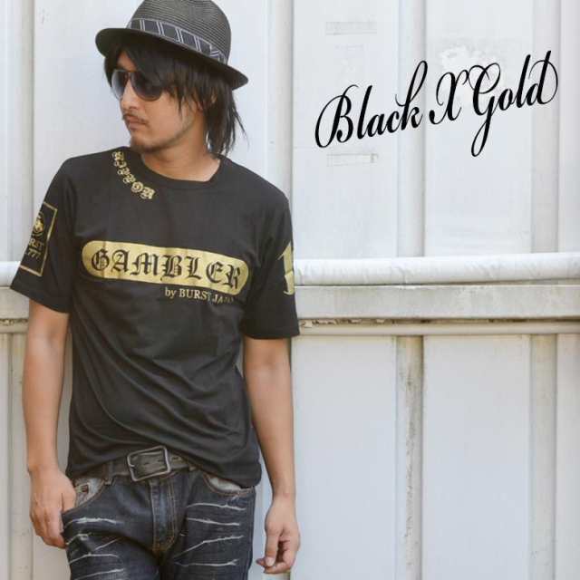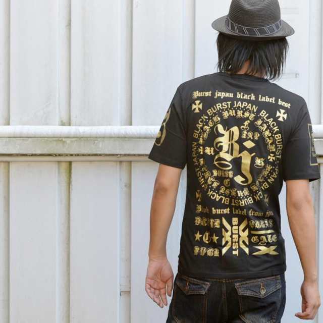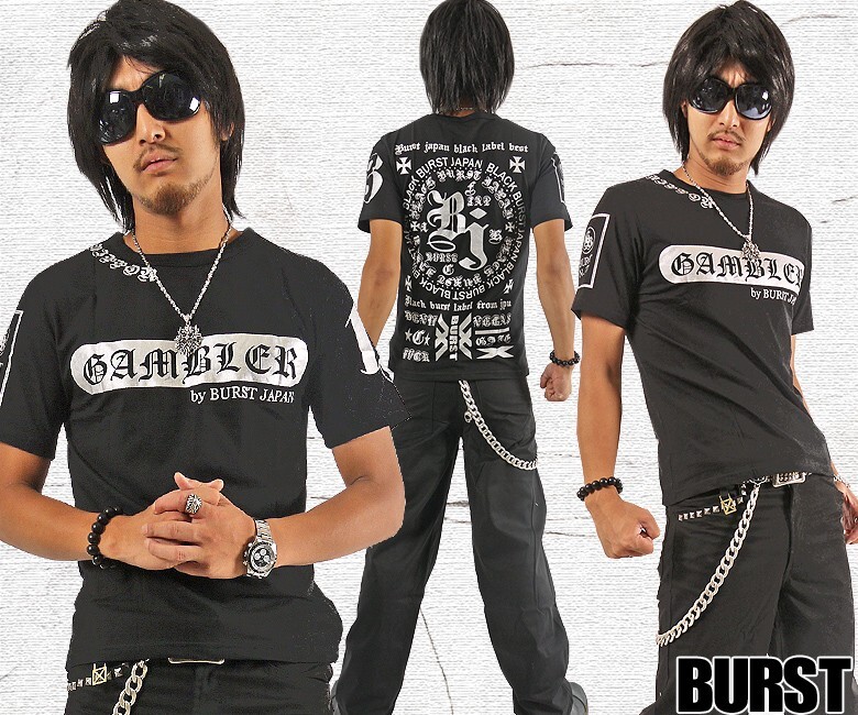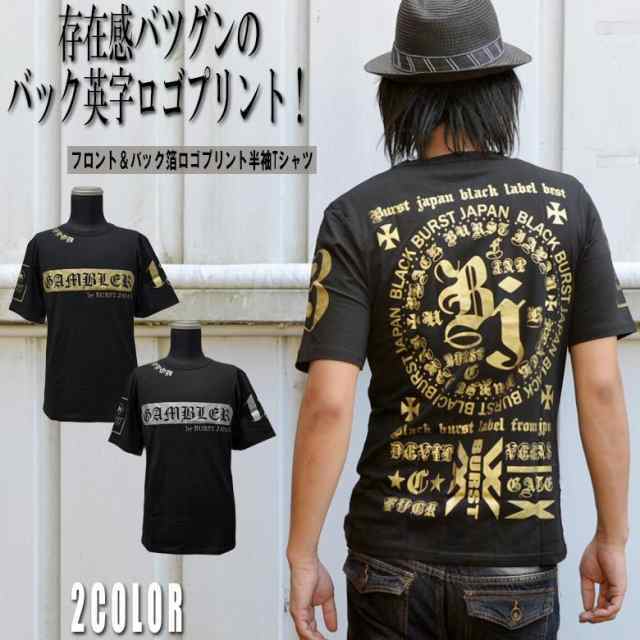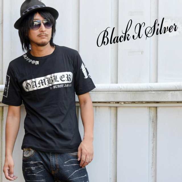 BURST 半袖Tシャツ GAMBLER箔プリント&ど派手ロゴプリント半袖Tシャツ 70536 新品ブラックシルバー M