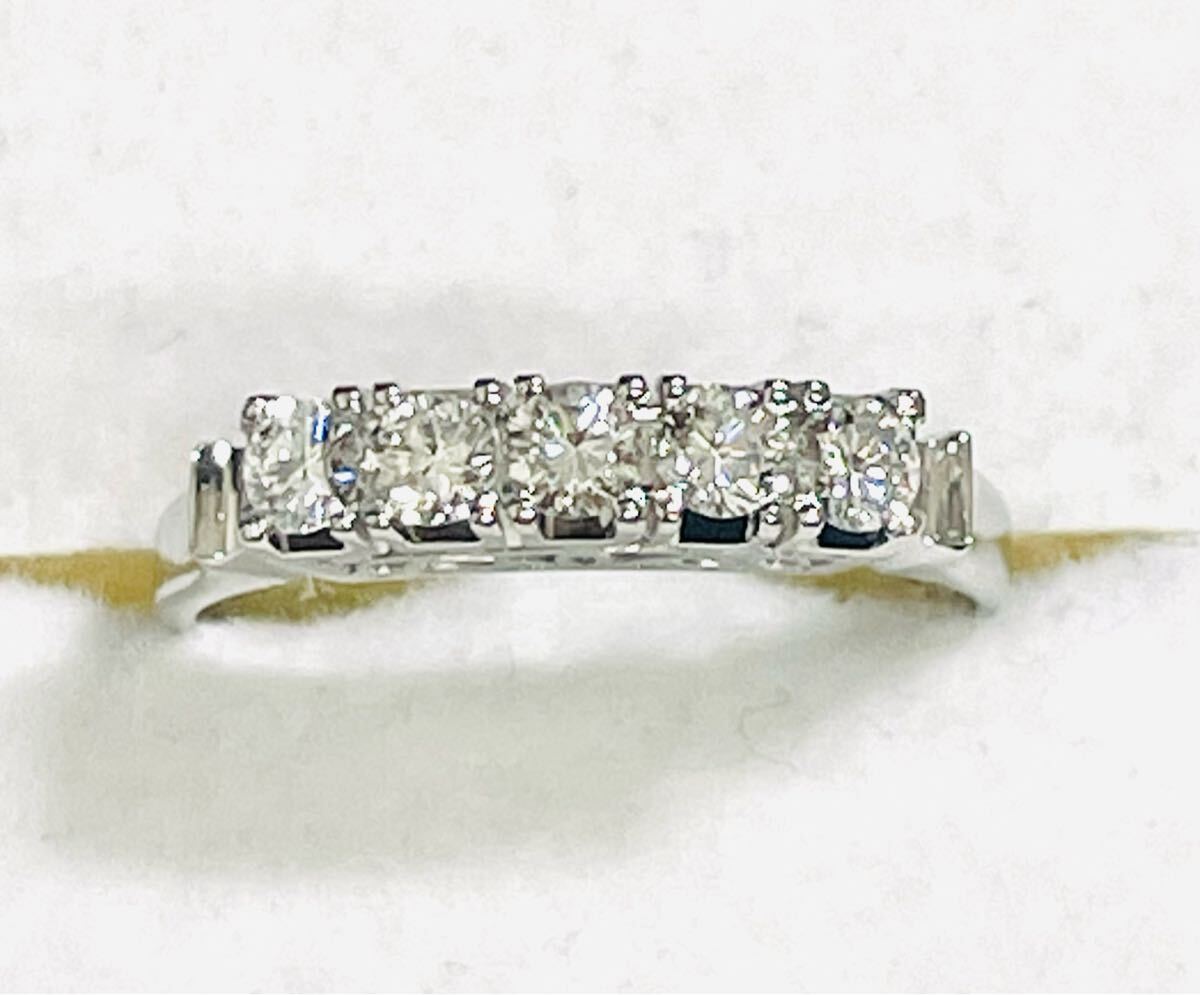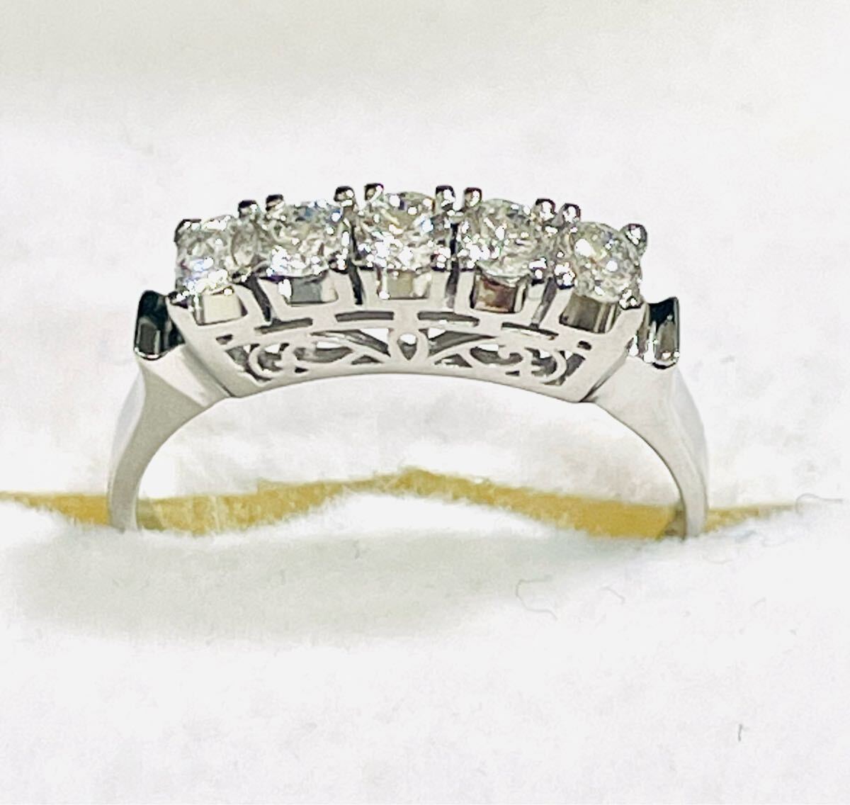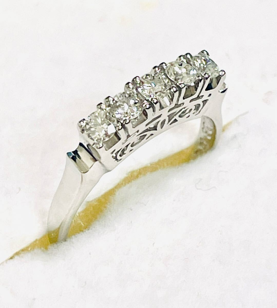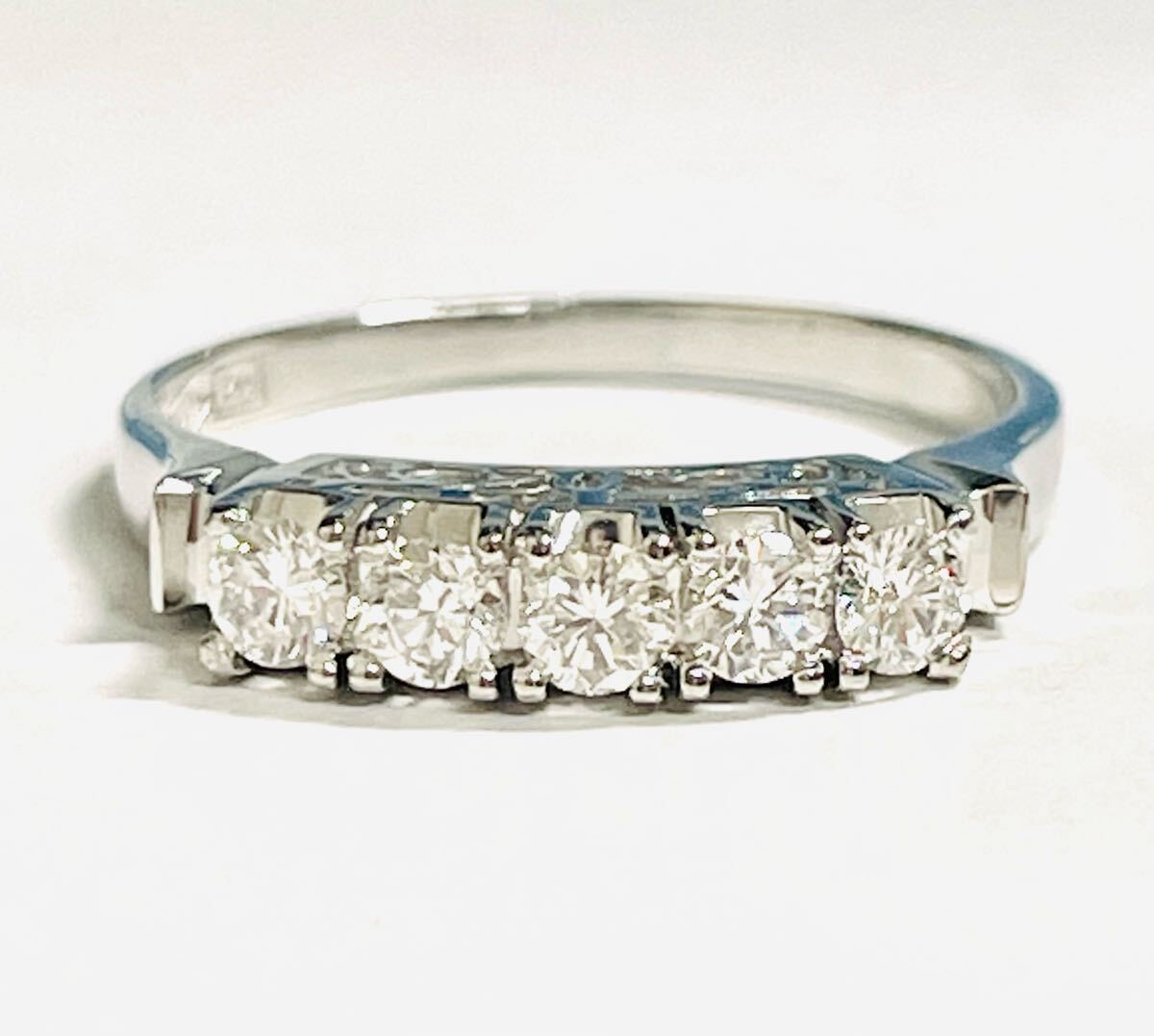 こちらは、Pt900台にダイヤ5石付き一文字リングです。