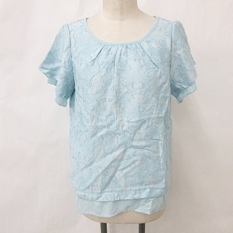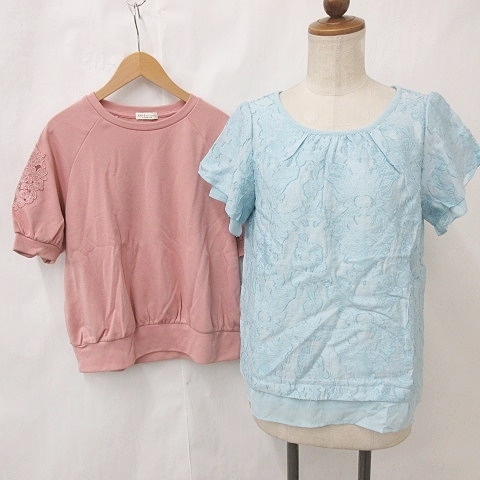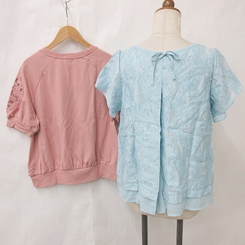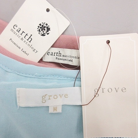 グローブ grove アースミュージック アンド エコロジー ブラウス カットソー 2枚セット 半袖 フレア袖 総柄 ブルー ピンク 青 M F