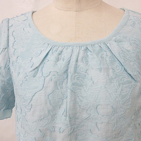 【素材】ブルー 本体表地 ポリエステル 43% レーヨン 35% ナイロン 22% 別布部分 ポリエステル 100% 裏地 ポリエステル 100% ピンク 本体 ポリエステル 82% %綿 18% レース部分 基布 ナイロン 100% 刺繍糸 レーヨン 100%
