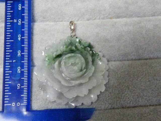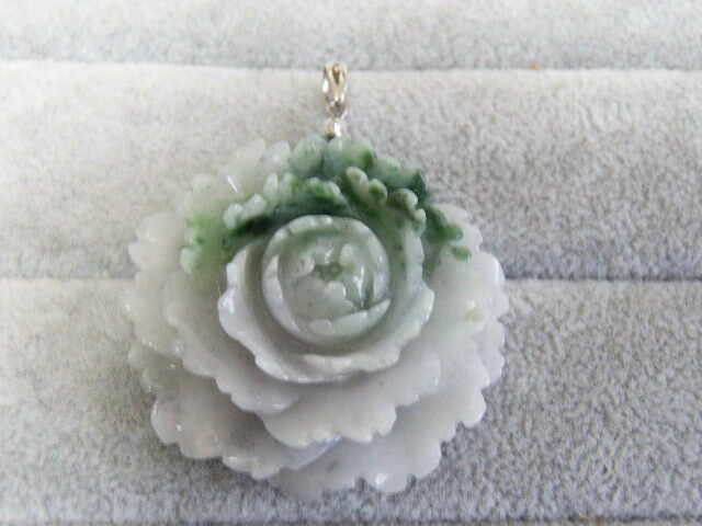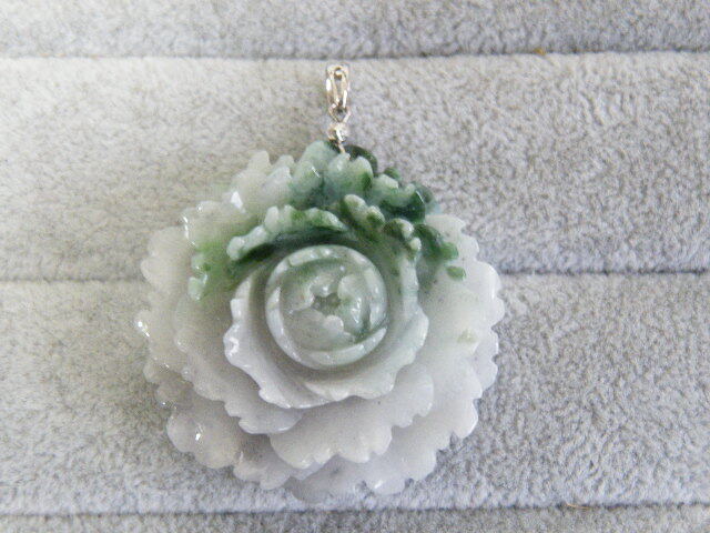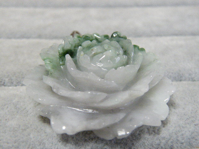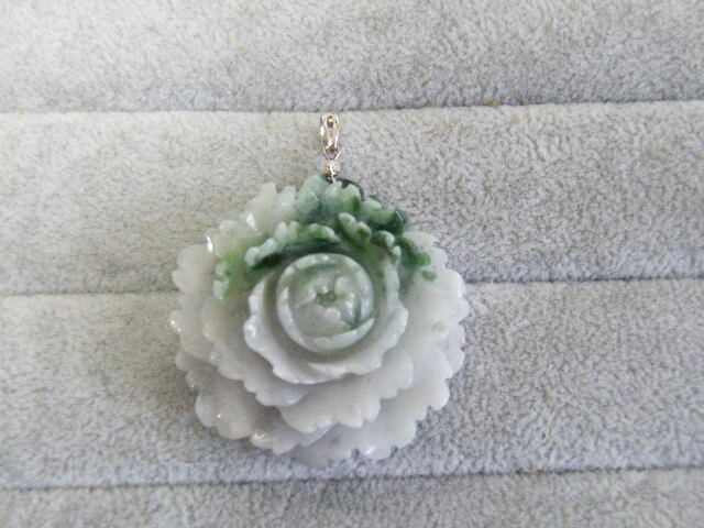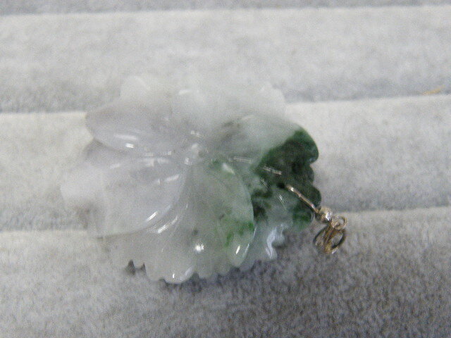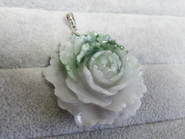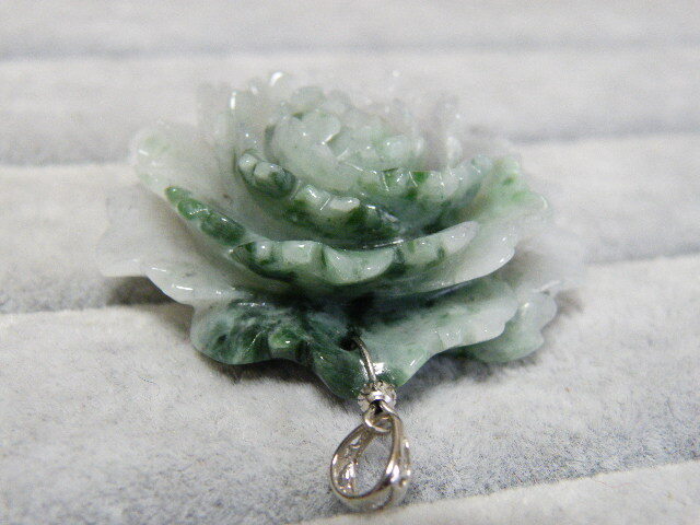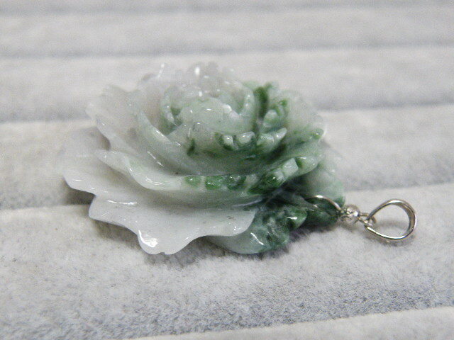8195.天然ミャンマー産 ヒスイ翡翠 バラ 薔薇 ネックレストップ 14金(585刻印) 未使用