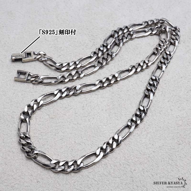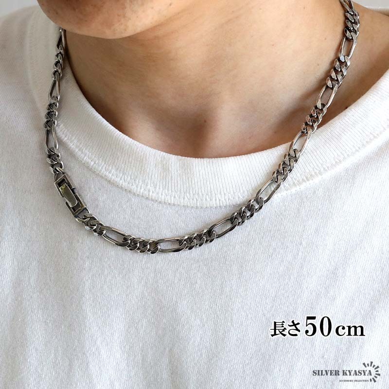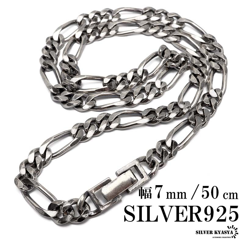 シルバー925 チェーンネックレス 中折れ フィガロチェーンネックレス 幅7mm 50cm 喜平ネックレス 金属アレルギー対応