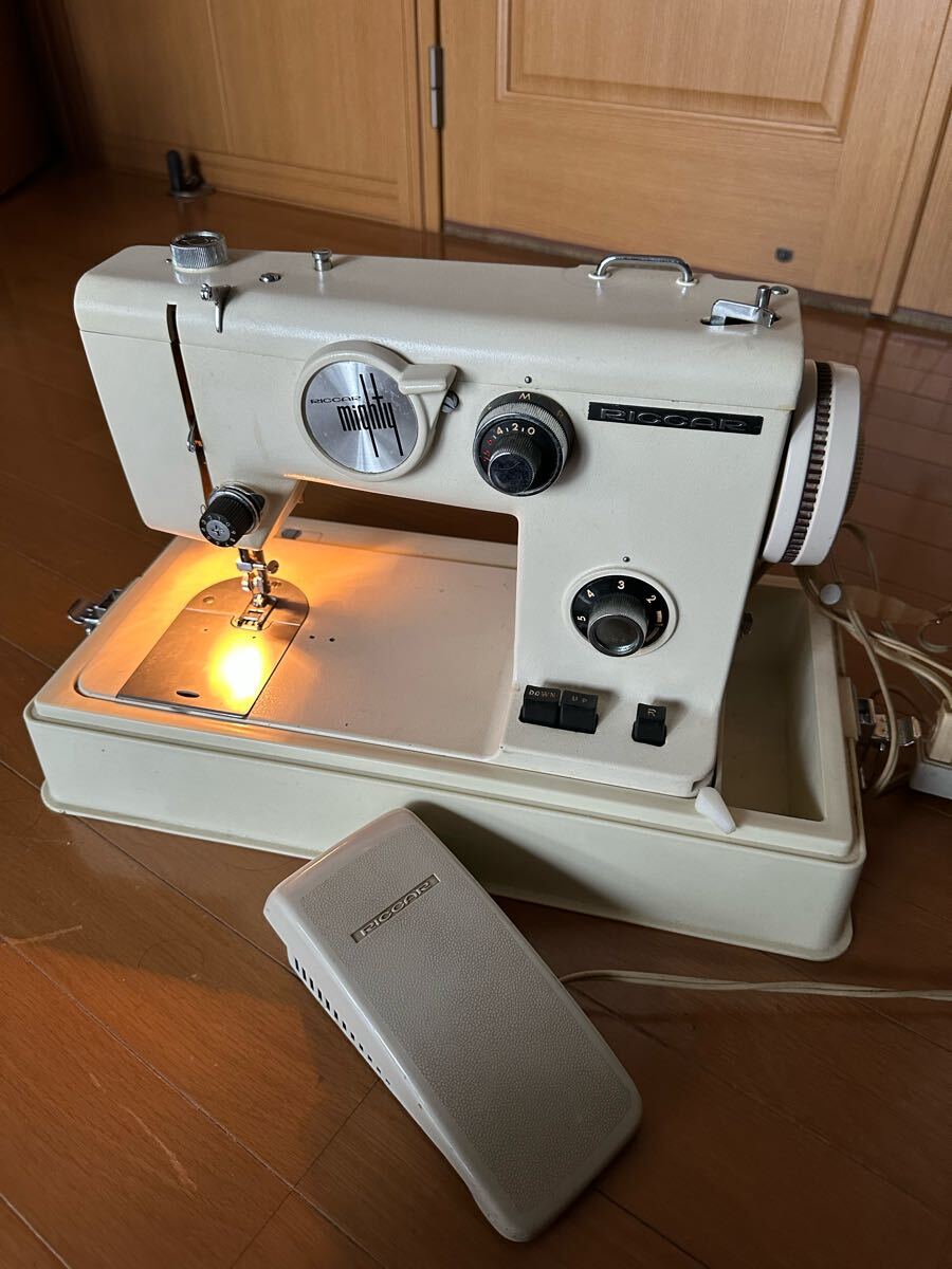 アンティークリッカー ミシン 本体 mighty 1600 マイティ RZ-1600 RICCAR 電通 動作確認 現状品 フットペダル付き 時代物