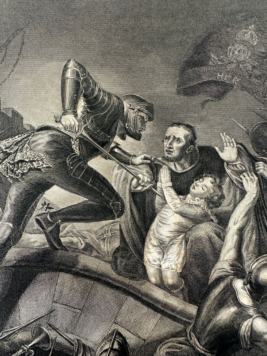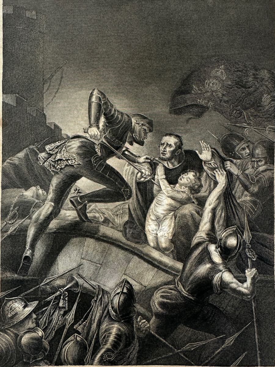 「Gallery of Pictures 」By The First Mastersという19世紀中頃に出版された大変貴重な挿画本からの一枚です。 Northcote.R.Aの作品をヘリオグラビュールで再現したものです。 状態は写真の通りシミ等あります。額装するとより雰囲気が出るかと思います。飾りやすいサイズです。