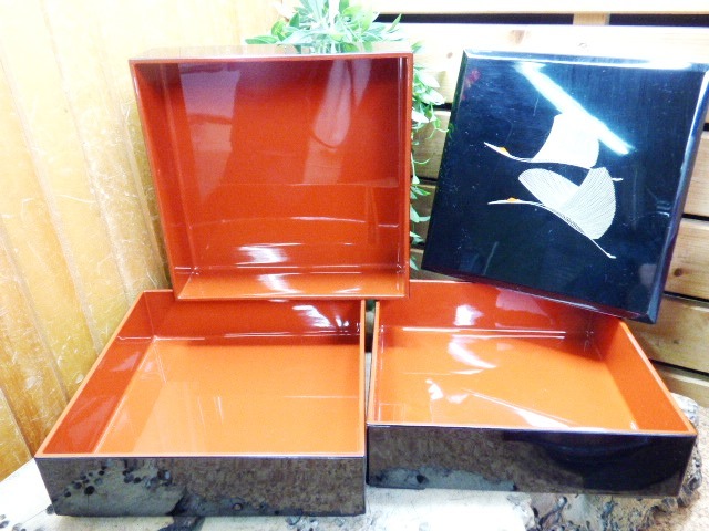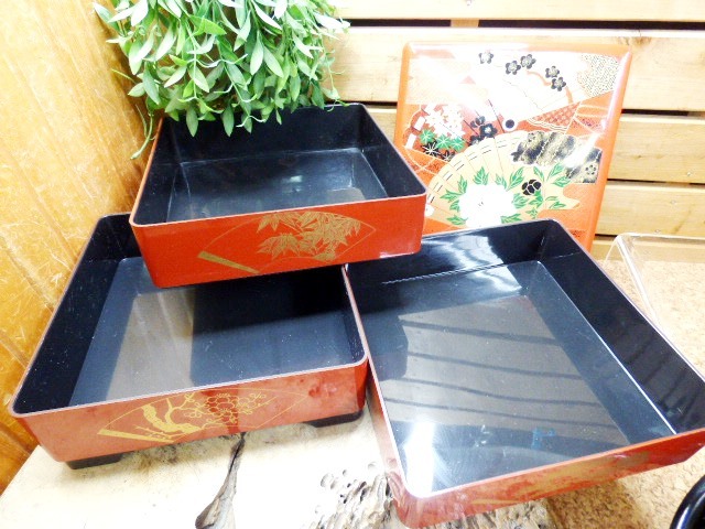 こちらは120サイズでの発送を予定しております。 送料は「配送・梱包方法」欄に記載がありますので、ご確認ください。 一段のお重 黒の無地(約):21×21×H7cm 朱の角重(約):19.5×20×H17.5cm など、詳細は写真でご確認ください。 ※すべてのお品のサイズを測ってはいませんので、上記サイズを参考にご考慮ください。 写真のものがすべてです(重箱以外のものはイメージのため、付属しません) こちらは中古品のため、傷や汚れがあります。 丸重には何かの跡があり、取ることができません。 その他傷や汚れなど、写真をご確認の上での入札をお願いいたします。 詳細複数写真 ← Googleフォト リンク出来る場合写真はGoogleフォト 動画はYouTubeにリンクしています ※梱包について※ 緩衝材を使用した梱包をご希望の場合は60~100サイズまで100円、120~170サイズまで300円を頂戴いたします。 落札時にご希望の旨を必ずご連絡下さい。ご連絡がない場合は簡易梱包で発送致します。 簡易梱包の場合、追加費用はかかりません。 ※簡易梱包は緩衝材等を使用しませんのでご了承下さい。 素人なりに配慮した梱包を心掛けております。 しかしながら配送中にどうしても欠け、ひび、割れ等発生する場合がございますが免責とさせて頂き、返金等は致しかねますのでご了承・ご了解の上ご入札下さい。 詳しくは梱包・発送についてをご確認下さい。 商品ランク(ランクの記載のない商品もございます) A:新品・未使用品。 B:未使用に近い状態です。 C:中古品ですが目立った傷や汚れありません。 D:中古品の為、やや傷や汚があります。 E:中古品の為、傷や汚れ等の使用感が多数あります。 F:全体的に状態が悪い。 ☆個人での主観評価となりますので参考程度にしてください。 | ||||||||||||||||||||||||||||||||||||||||||||||||||||||||