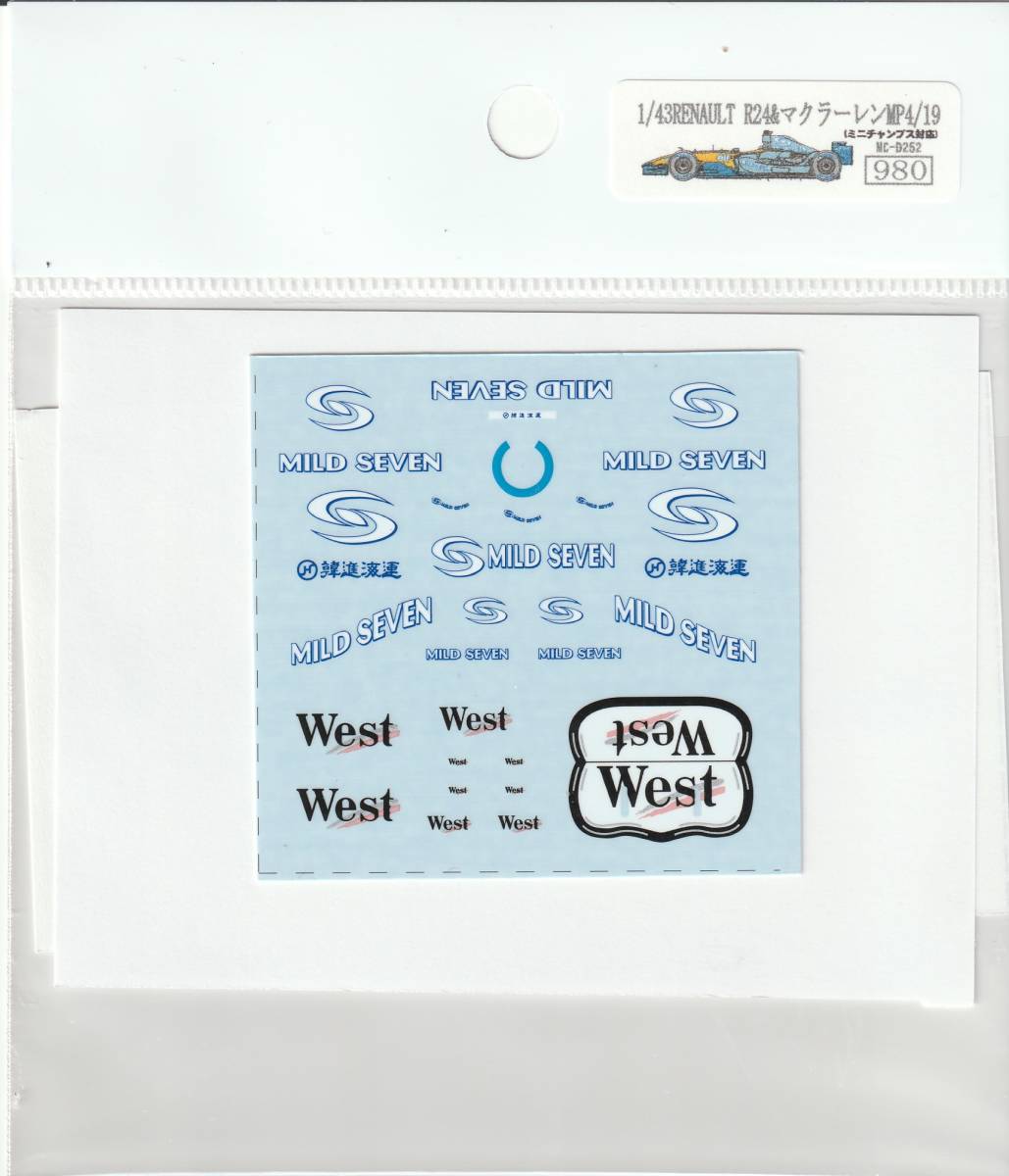 隔週刊F1マシンコレクション ルノーR24用マイルドセブンデカール。デカールのみです。
