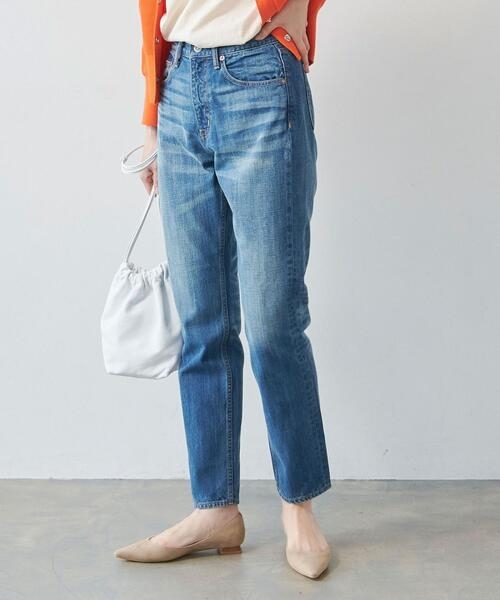 green label relaxingの定番人気シリーズ、シグネチャーデニム。 女性の体に合わせたフェミニンなすっきり見えのシルエットで長すぎない股下とハイウエストがポイントです。 真っ直ぐ立った際の股下まわりがきれいに見えるよう、ヒップ~ももまわりシルエットにこだわった仕上がりです。