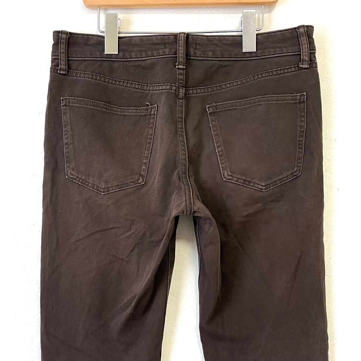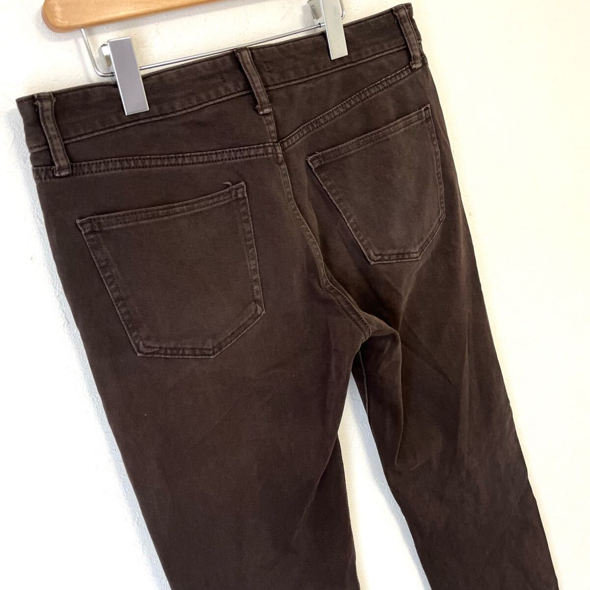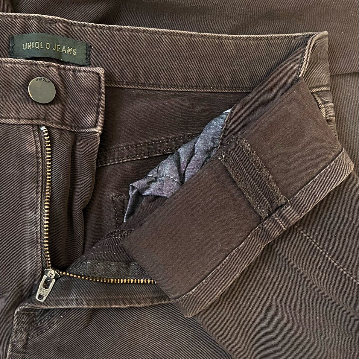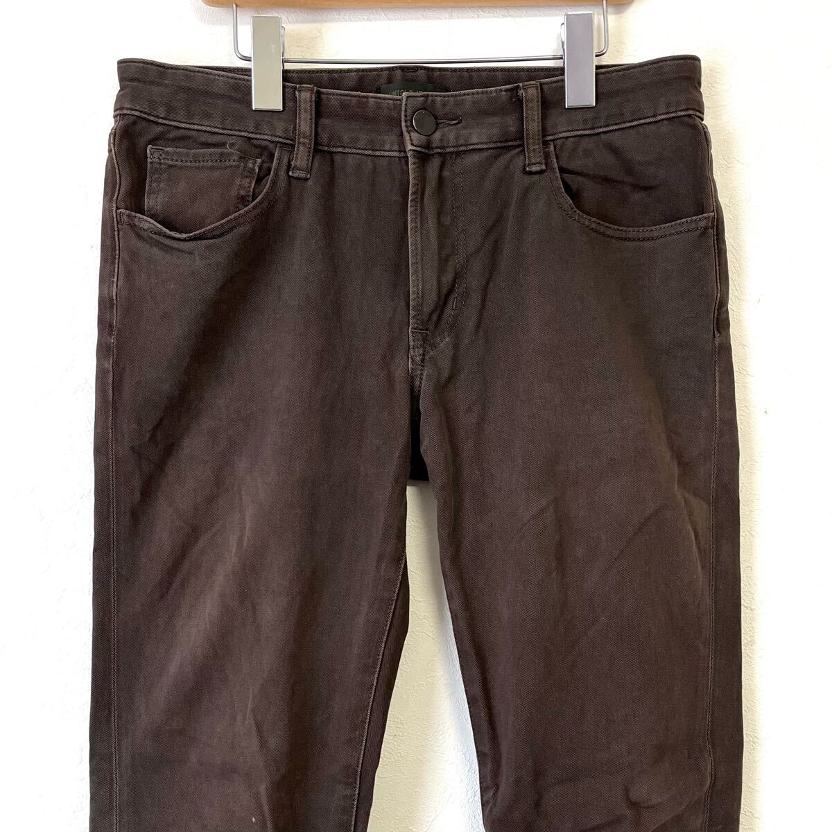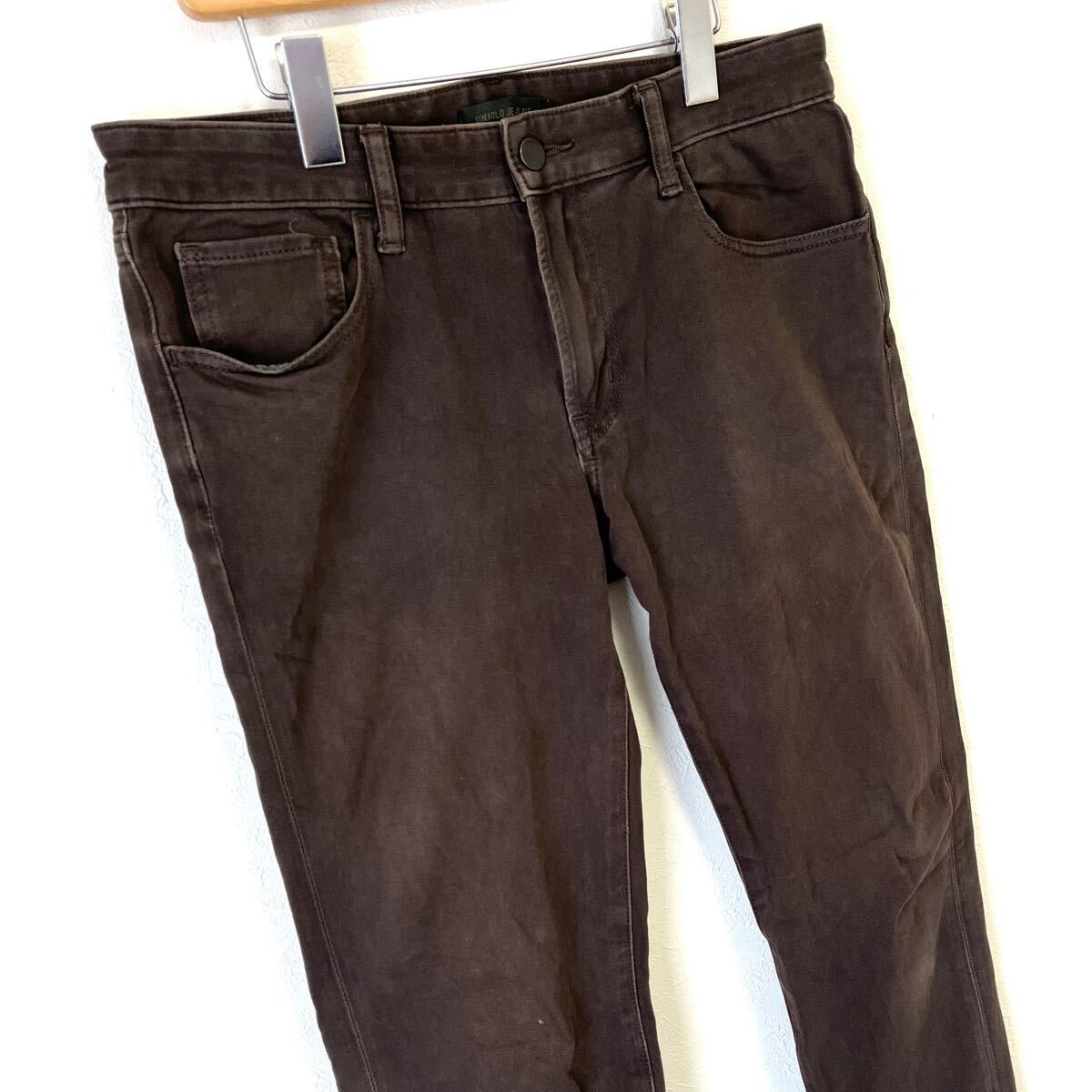 UNIQLO のカラーデニムパンツです。ストレッチが効いた肌触りの良い生地を使用し、動きやすく快適な穿き心地!綺麗なシルエットで脚長効果も期待できます◎膝などに若干の着用感がございますが、目立つダメージはなく まだまだご着用いただけます◎