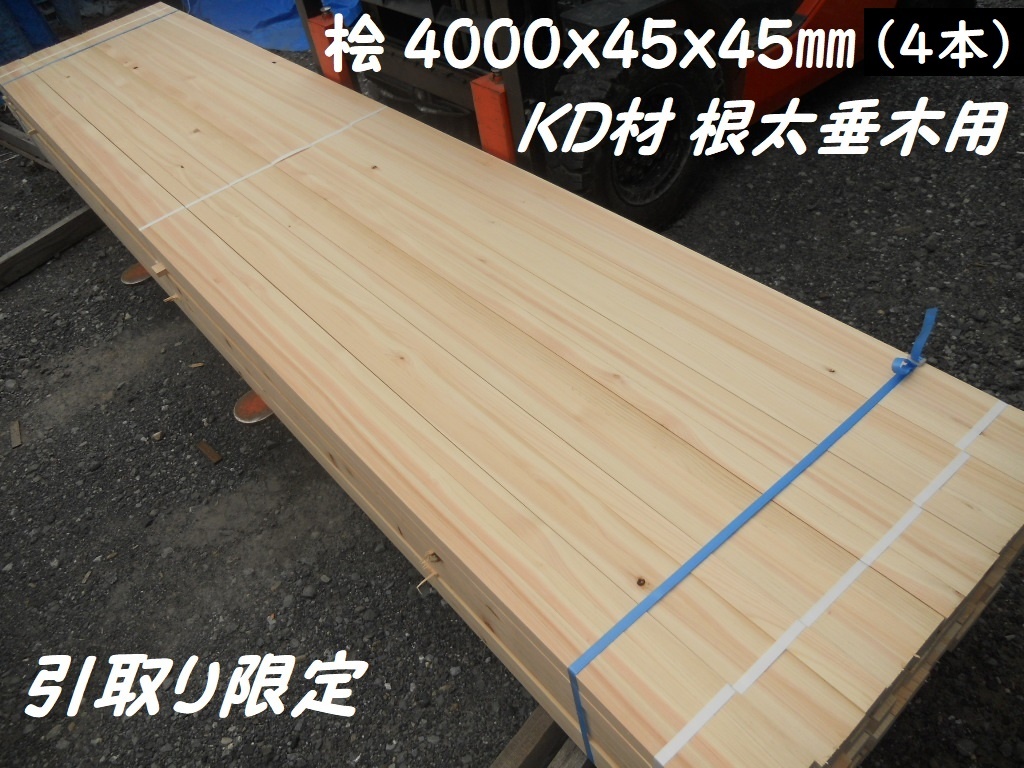 | 【 引取り限定商品 配送不可 】 国産桧 A~S品 KD特等 4000X45X45mm (4本分価格) ※消費税不要 落札後に取引ナビよりお引取りの流れをご案内をさせていただきます 御対応日時などはメールやお電話にて御調整が必要となります ![]() | |