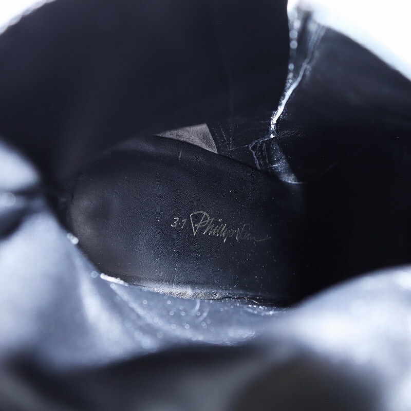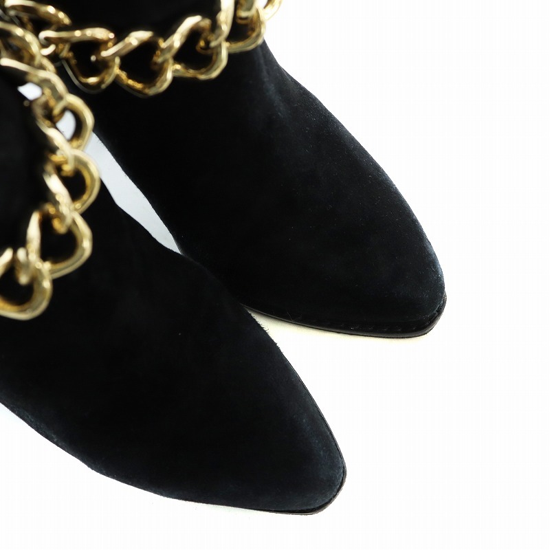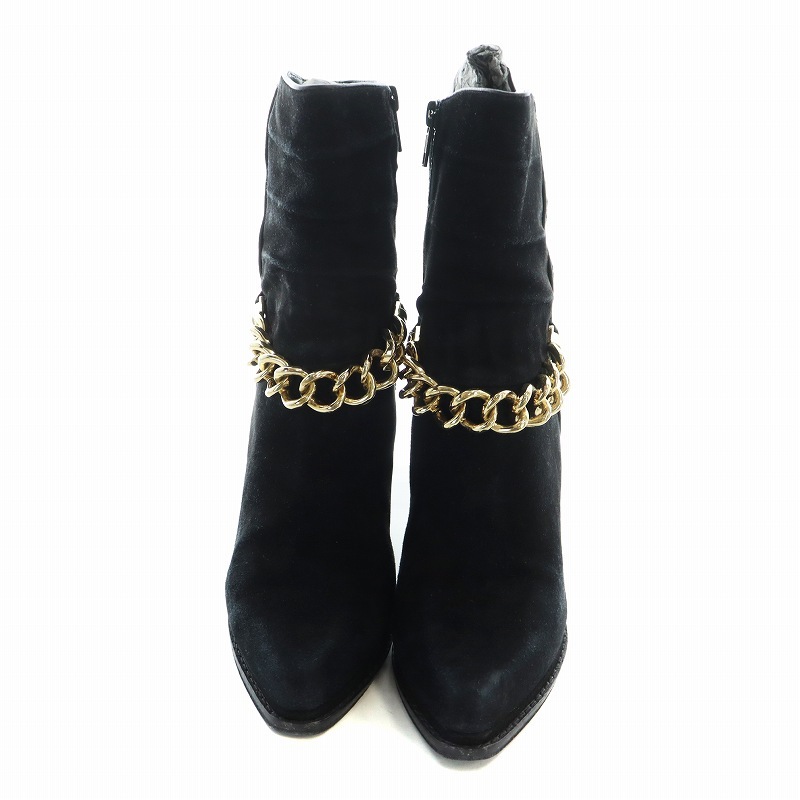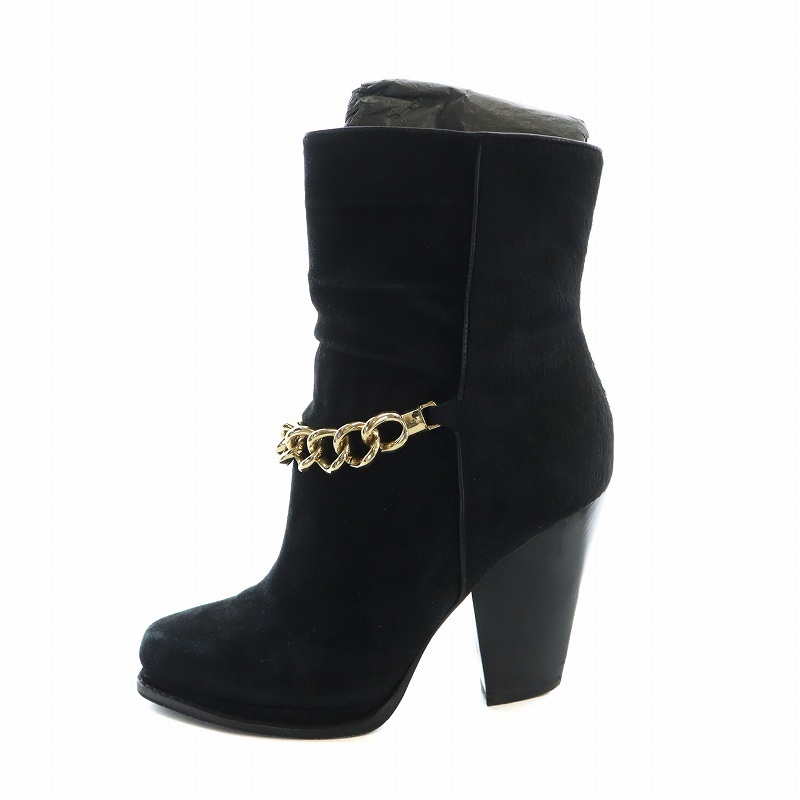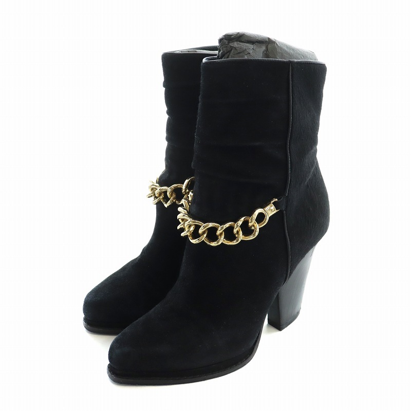 3.1 フィリップリム 3.1 phillip lim ショートブーツ ポインテッドトゥ スエード ハラコ 切替 ゴールドチェーン 37 23.5cm 黒 ブラック