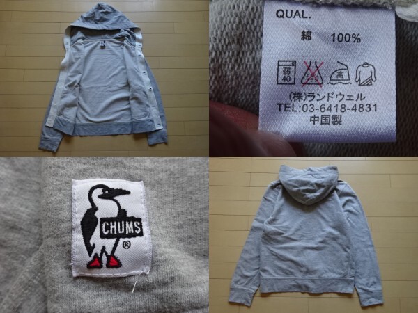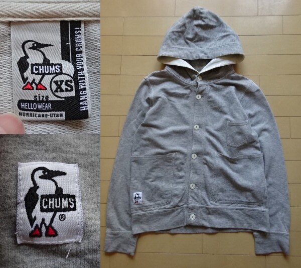 【CHUMS】前開き ボタン パーカー ヘザーグレー SIZE:XS (チャムス,キャンプ,アウトドア)