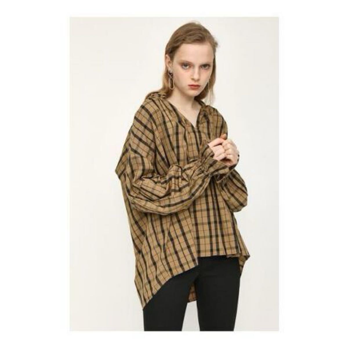 ユーズドのSLY≪スライ≫ GINGHAM CHECK VOLUME トップスです。素材はレーヨン60%ポリエステル40%です。