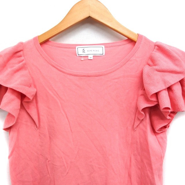 ロペピクニック ROPE Picnic フリル付き フラッタースリーブ ニット セーター ボートネック 無地 38 ピンク /FT5 レディース