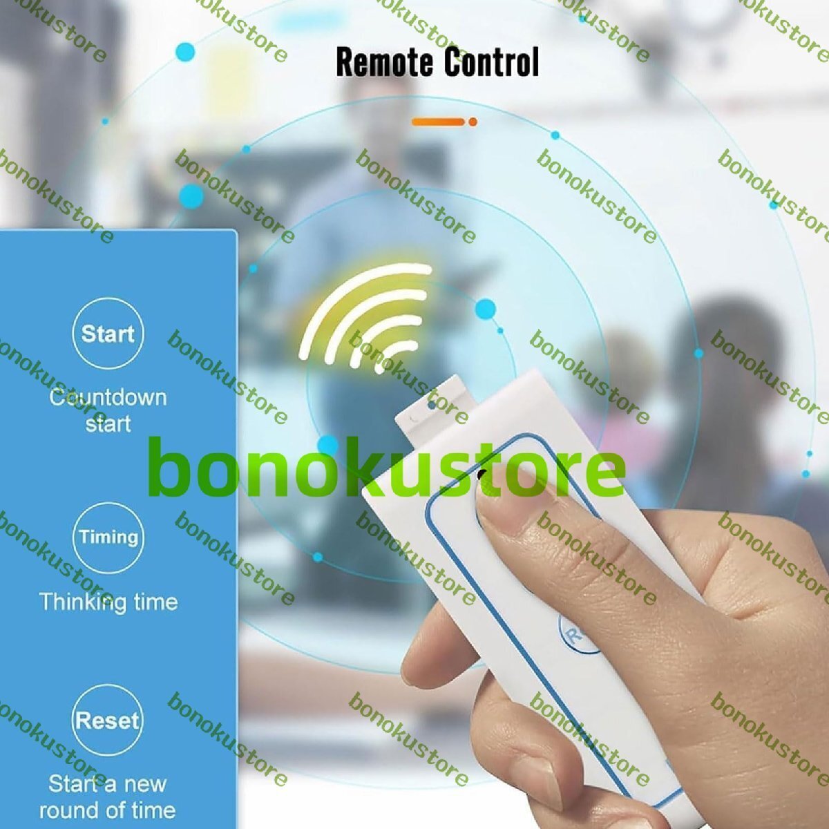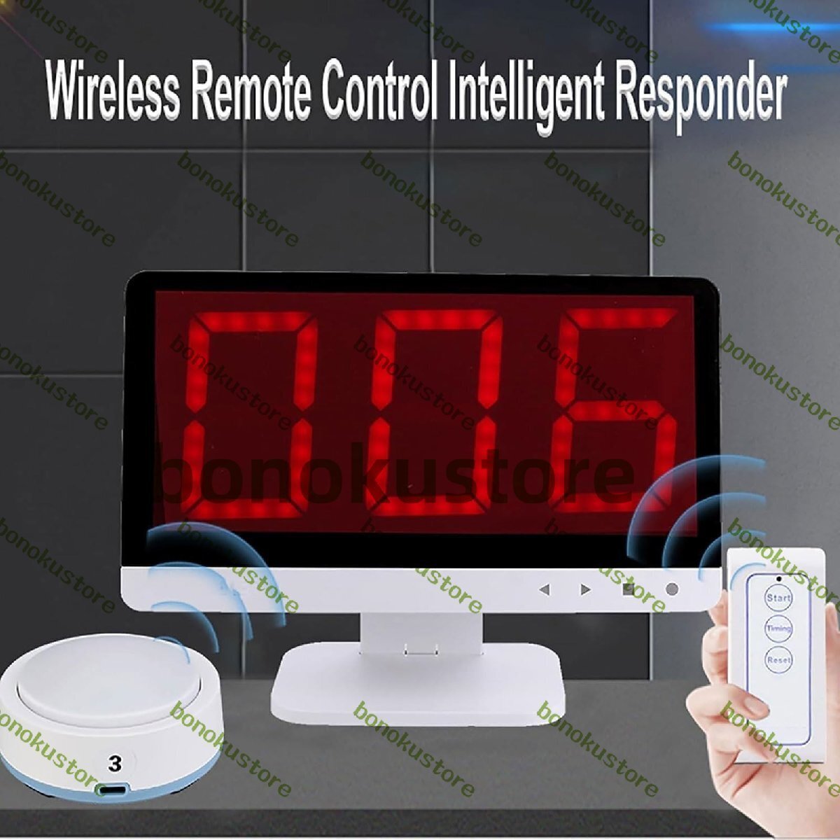 製品サイズ:メイン画面266x150x20mm ワイヤレスリモコン 100x45x18mm 通信方式:2.4G無線周波数ホッピング通信 送信距離: オープンエリアで100メートル ペア数: 1~32グループ、任意の組み合わせ チャンネル数:15通信チャンネル(マルチチャンネル設定、強力な耐干渉能力) ディスプレイサイズ: 3インチ3桁高輝度デジタルチューブディスプレイ モード: 3 (通常モード、音声モード、消去モード) カウントダウン: 1?999秒、カウントダウンバトル、カウントダウン回答、カウントダウン回答