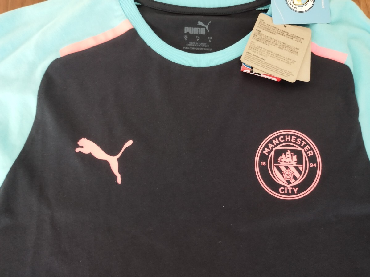 レギュラーフィットのシルエットとクルーネックの襟元が特徴です。胸元にはオフィシャルエンブレム。マンチェスター・シティーの選手と同じようにピッチの外でも着用し、チームを応援しよう。
