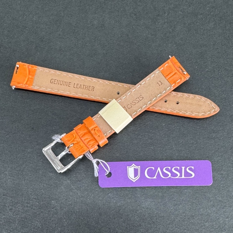 送料無料 特価 新品★CASSIS 時計ベルト 13mm オレンジ 牛革バンド クロコ型押し クリッカータイプ★カシス正規品 定価税込3,300円