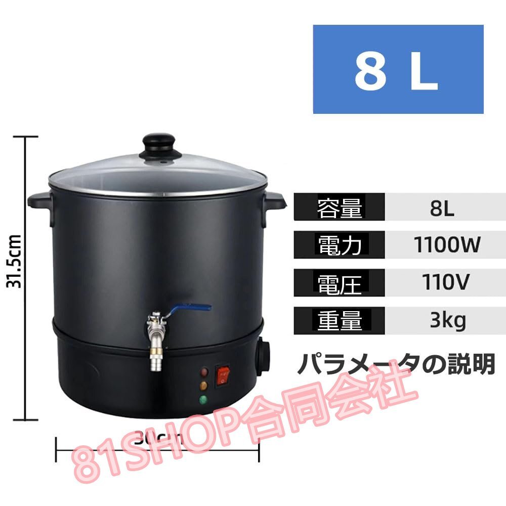 電気ワックスメルター 大型 キャンドル作り用 石鹸作り用 大容量 8L 迅速なワックス溶解 1100w ワックス溶融炉 30℃-110℃ 温度調整可能