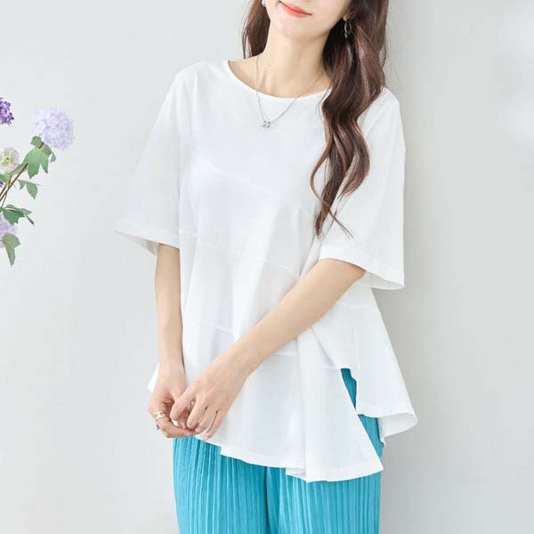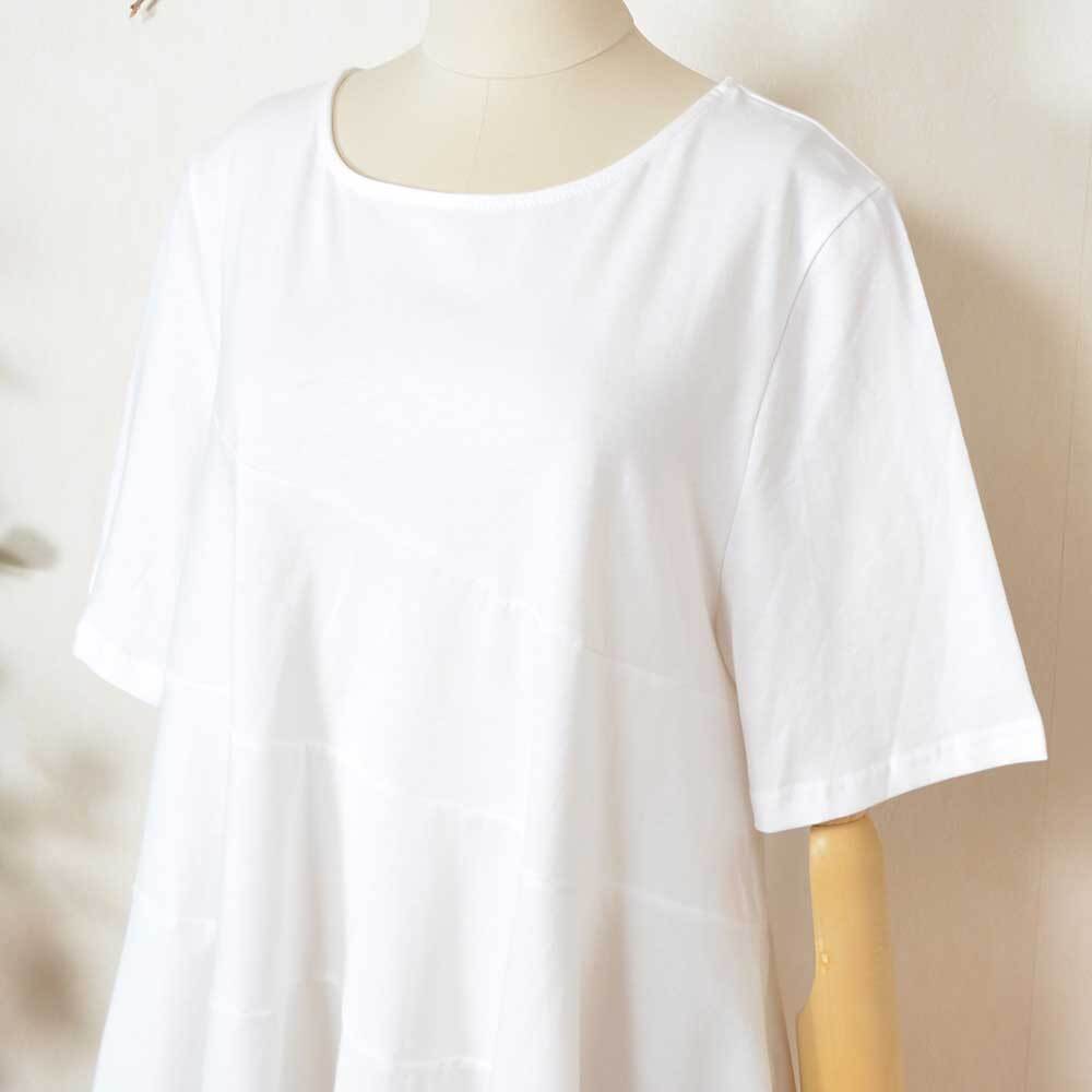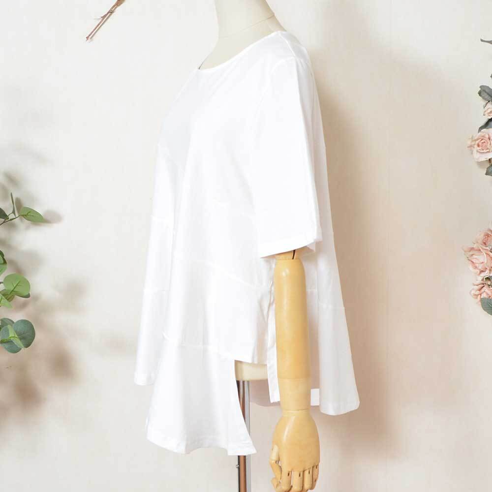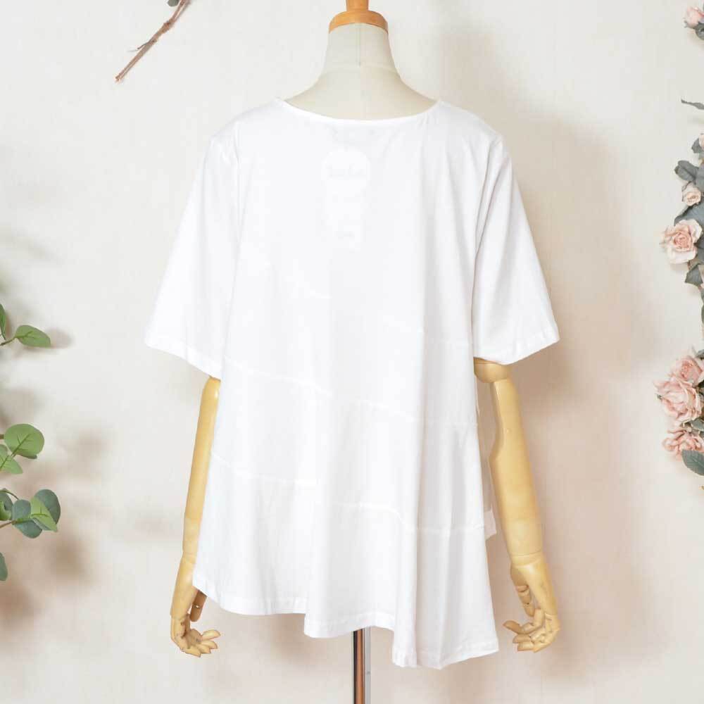 新品☆チュニック L〜LL 大きいサイズ イレギュラーティアード 綿 トップス Tシャツ カットソー レディース 半袖/ホワイト 白/C01-353A