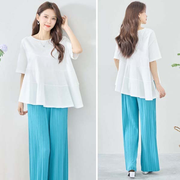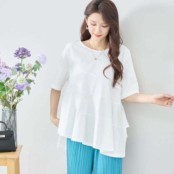 ・ティアード切替デザインでフレアたっぷりのTシャツ。