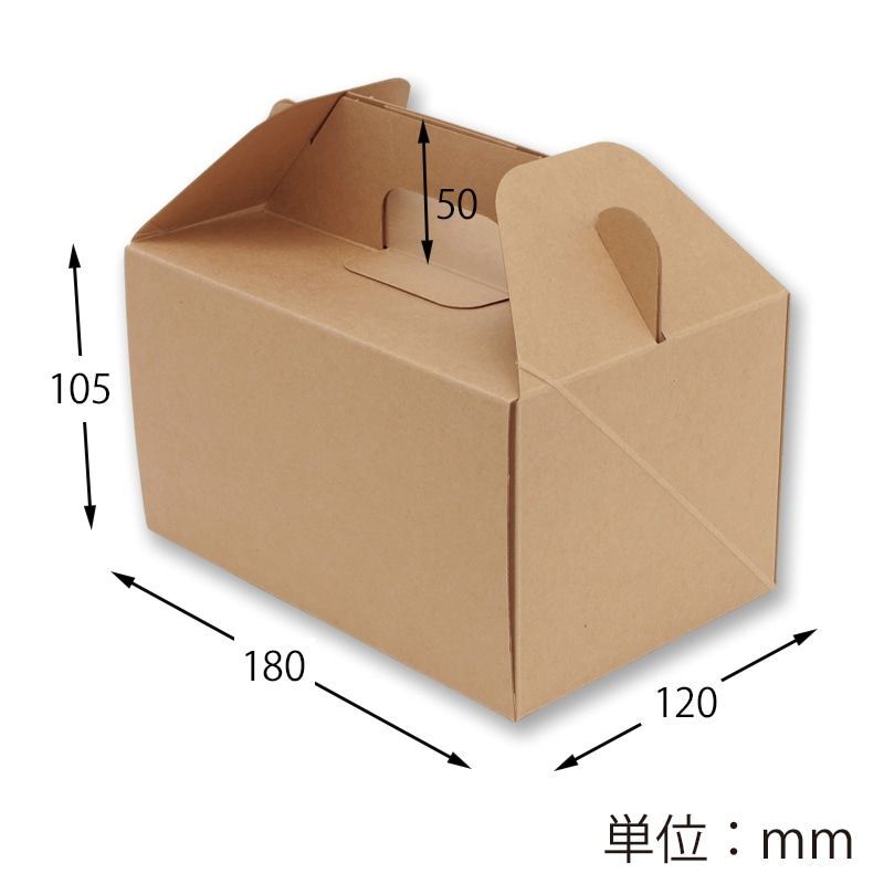 ナチュラルなクラフトテイストの持ち手付きケーキ箱です。カットケーキ4~5個が目安です。組立式の商品です。