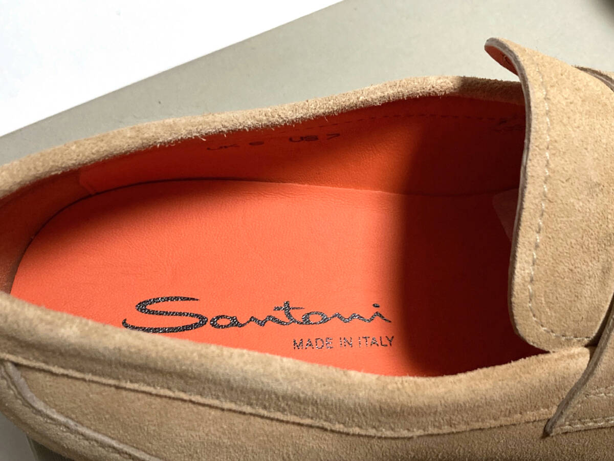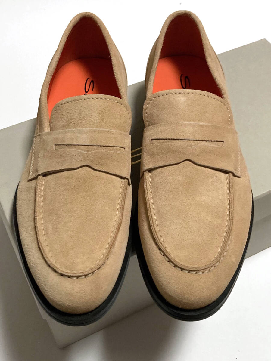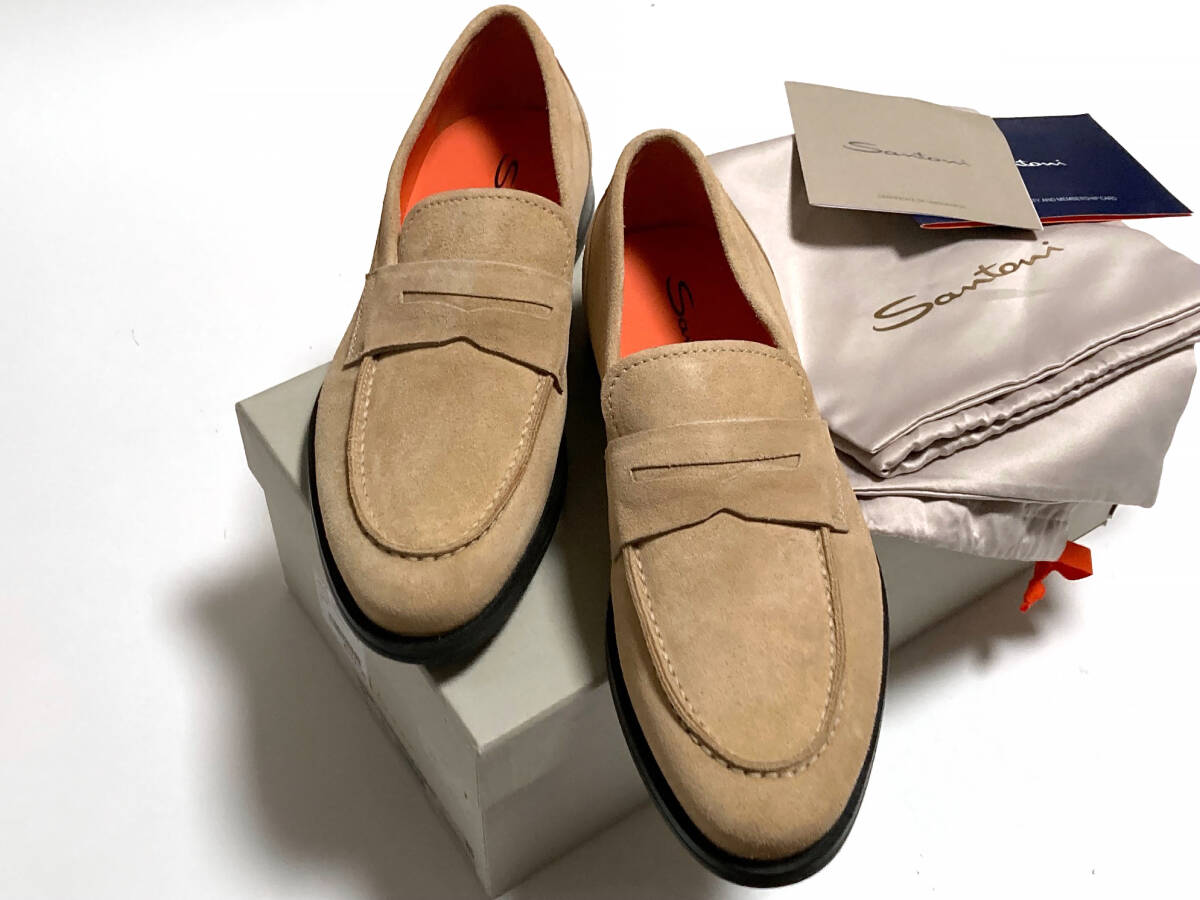 Santoni スエードペニーローファー コインローファー sand サントーニ UK6(25cm) ラバーソール made in ITALY イタリア製